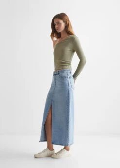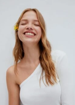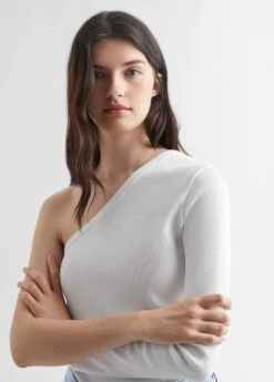 tissu en coton, asymetrique, manches longues, col asymetrique, une manche, le mannequin mesure 172 cm et porte une taille mComposition: 95% coton,5% elasthanne