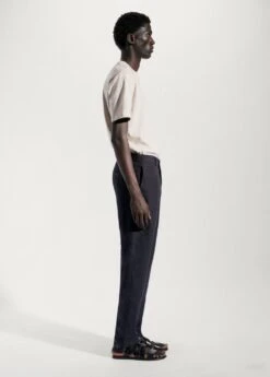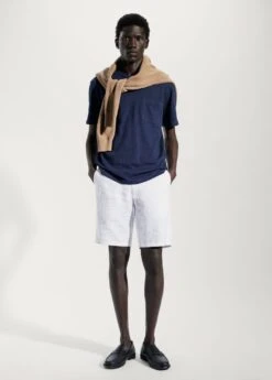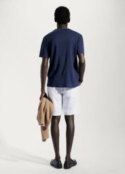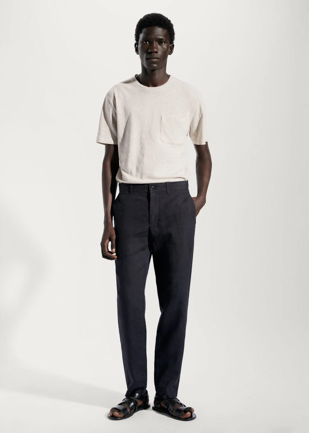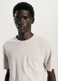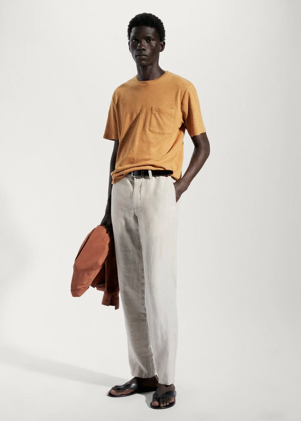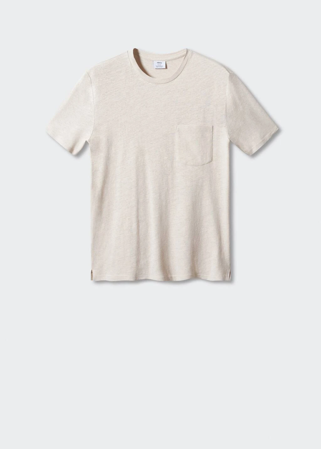 slim-fit, tissu en coton et lin melanges, tissu leger, col rond, manches courtes, bas droit fendu sur les cotes., le mannequin mesure 190 cm et porte une taille m, exclusivite internetComposition: 53% lin,47% coton