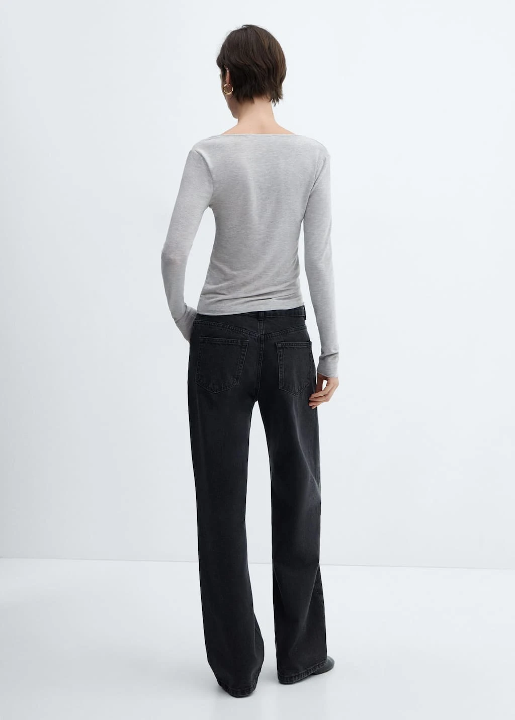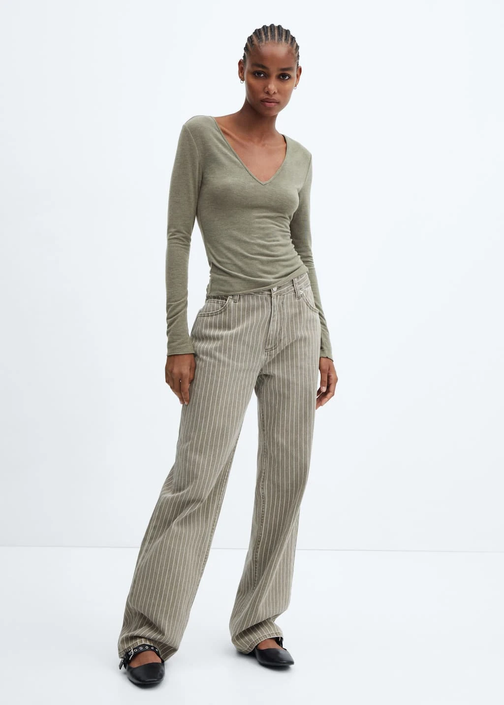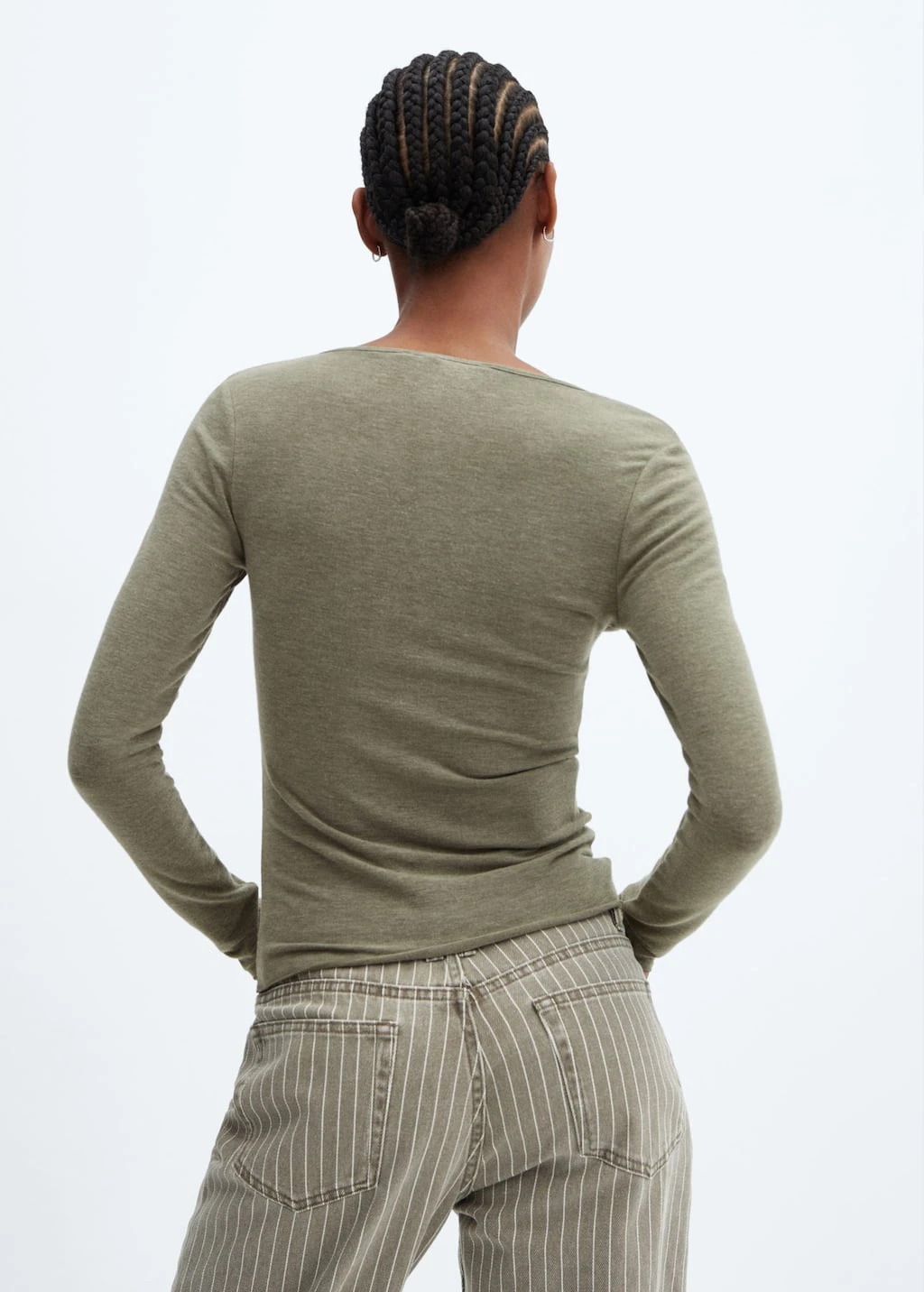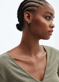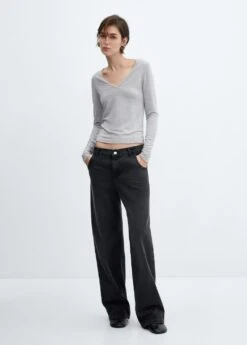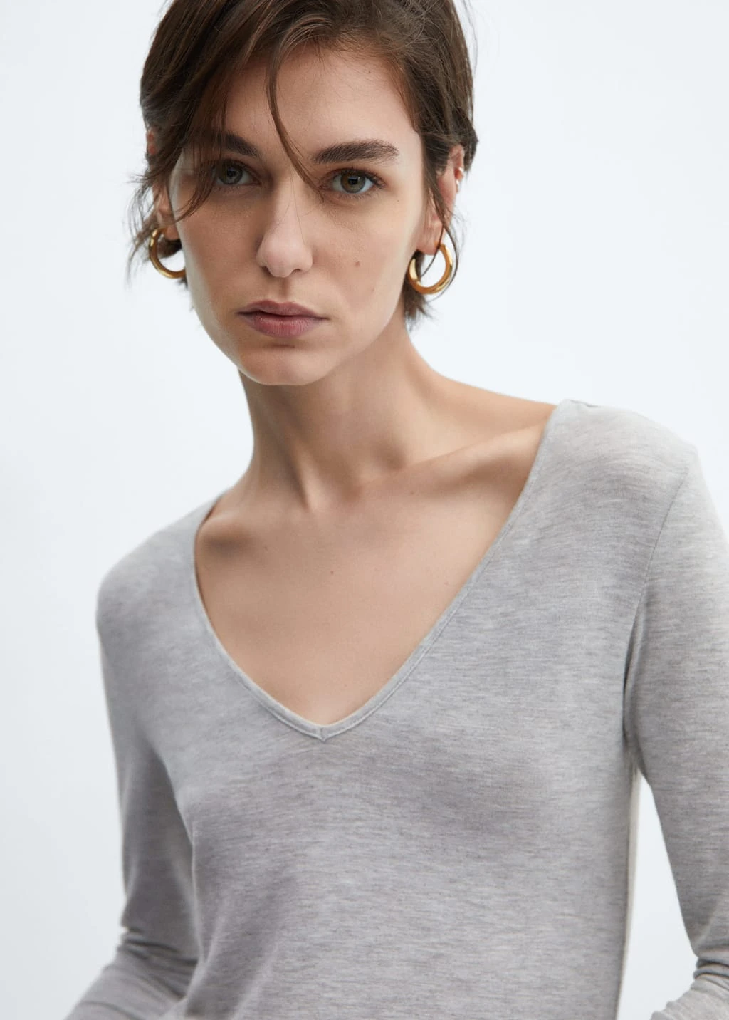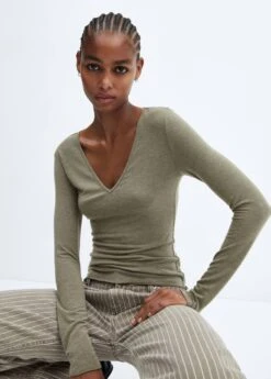 tissu en maille fine, tissu fluide, droit, col en v, manches longuesComposition: 66% polyester,27% viscose,7% elasthanne