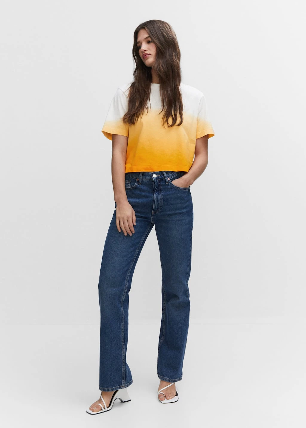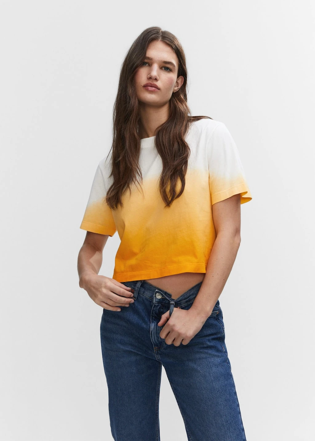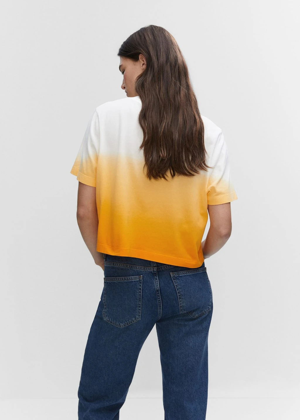 tissu 100 % coton, coupe droite, imprime degrade, col rond, manches courtes, message imprime, sans fermetureComposition: 100% coton