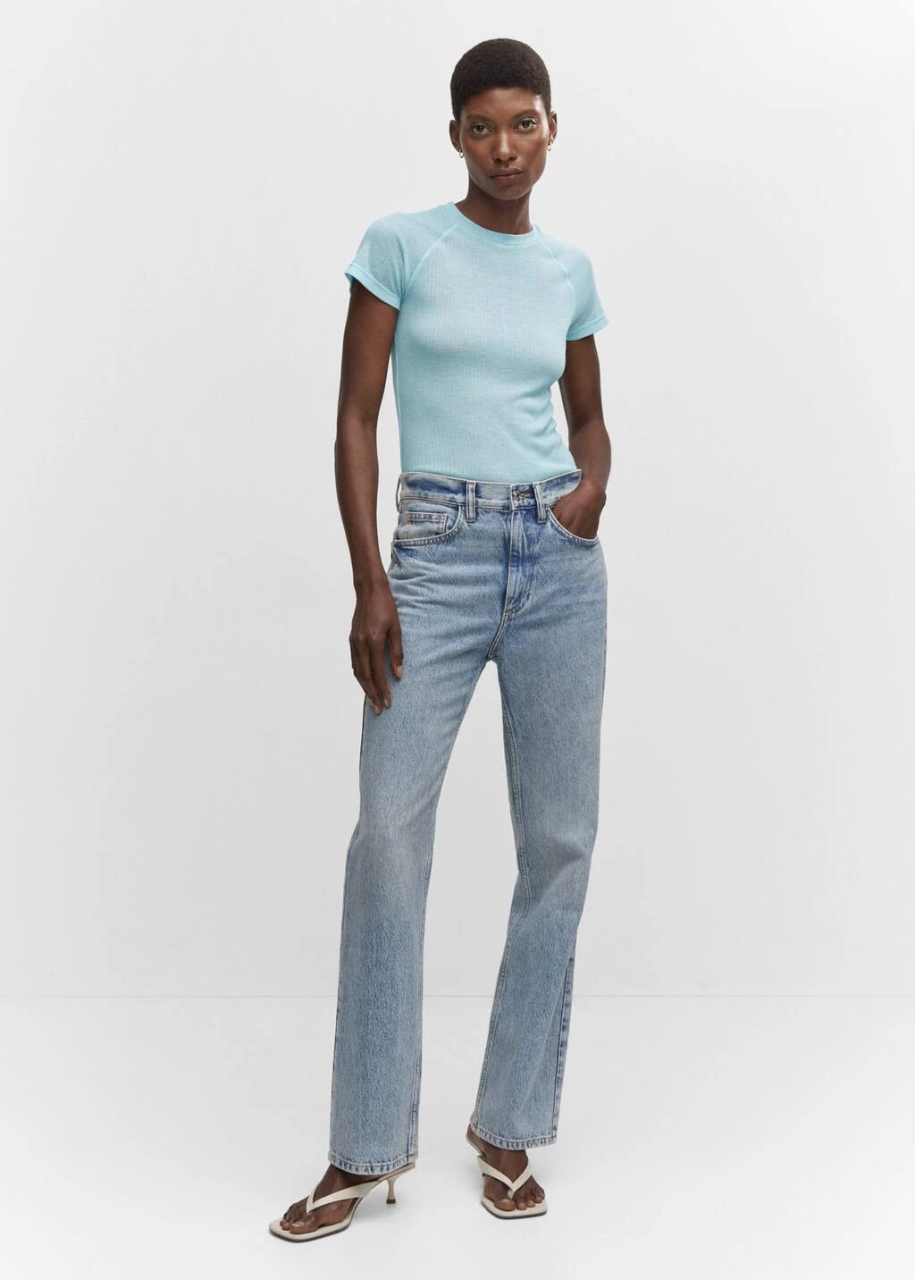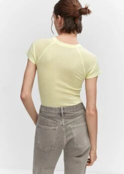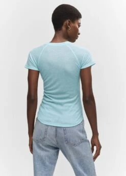tissu fluide, ajuste, col rond, manches courtes, coutures decorativesComposition: 86% polyester,14% viscose