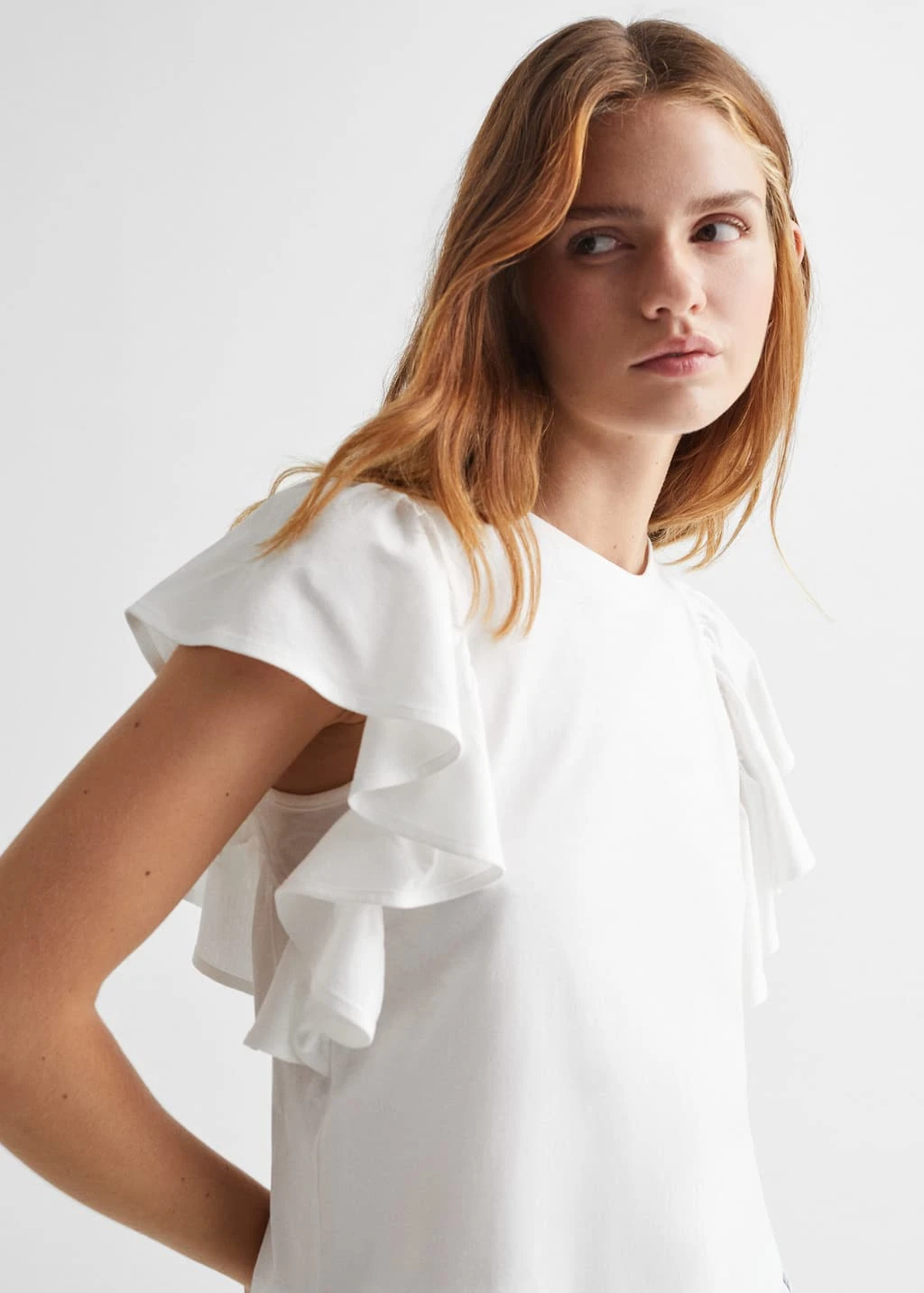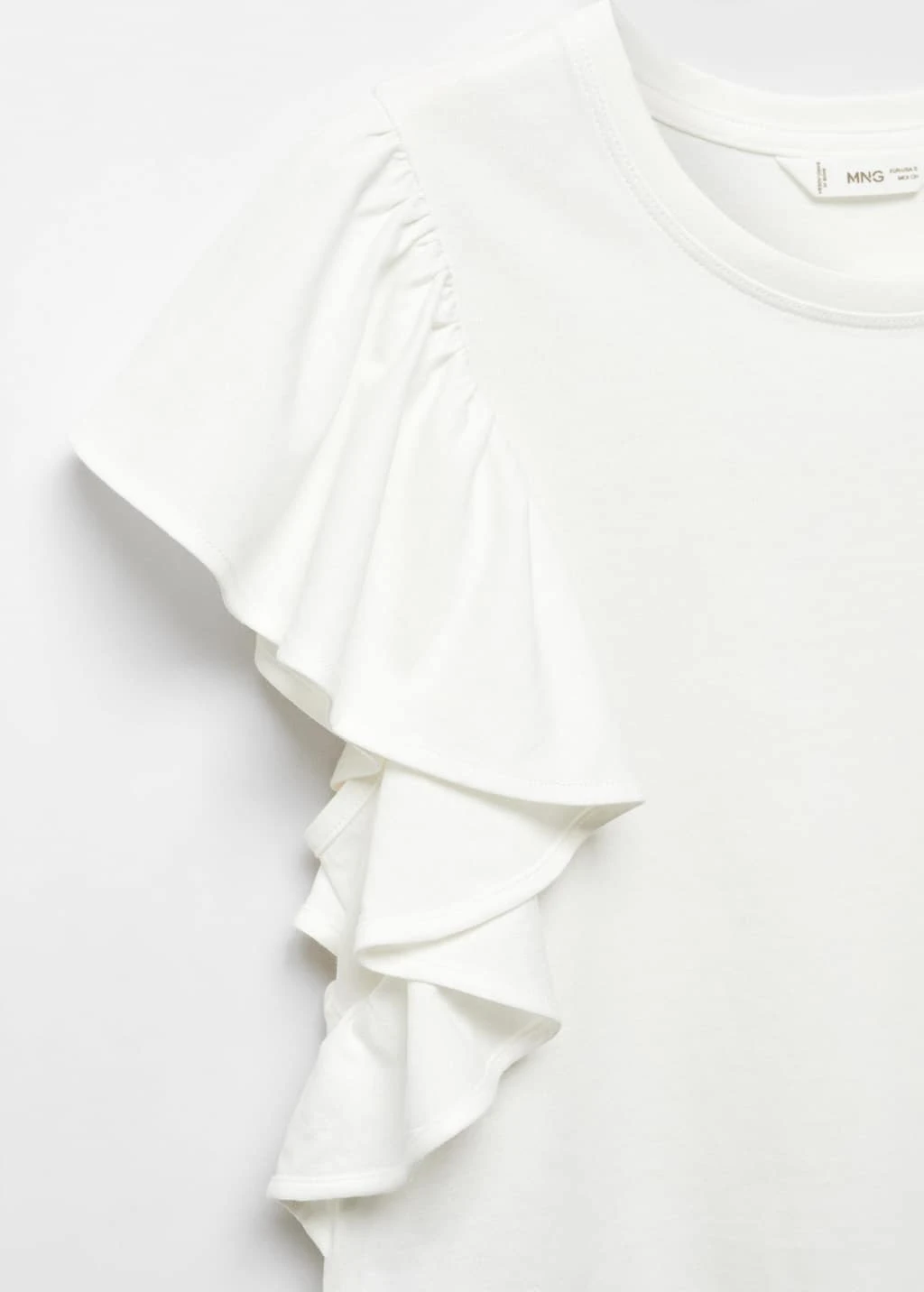 100 % coton, droit, motif volants, manches a volants, col rond, manches courtes, le mannequin mesure 172 cm et porte une taille mComposition: 100% coton