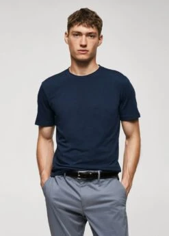 slim-fit, tissu leger de coton, tissu en coton stretch, col rond, manches courtes, le mannequin mesure 183 cm et porte une taille m, avec ce vetement en coton, vous soutenez notre investissement dans la mission de better cotton. ce tissu est un equilibre de masse qui remplace ou melange du coton better cotton avec du coton conventionnel, aussi il est possible quâil ne contienne pas de better cotton. les agriculteurs partenaires beneficient d’un soutien et d’une formation continus.Composition: 95% coton,5% elasthanne