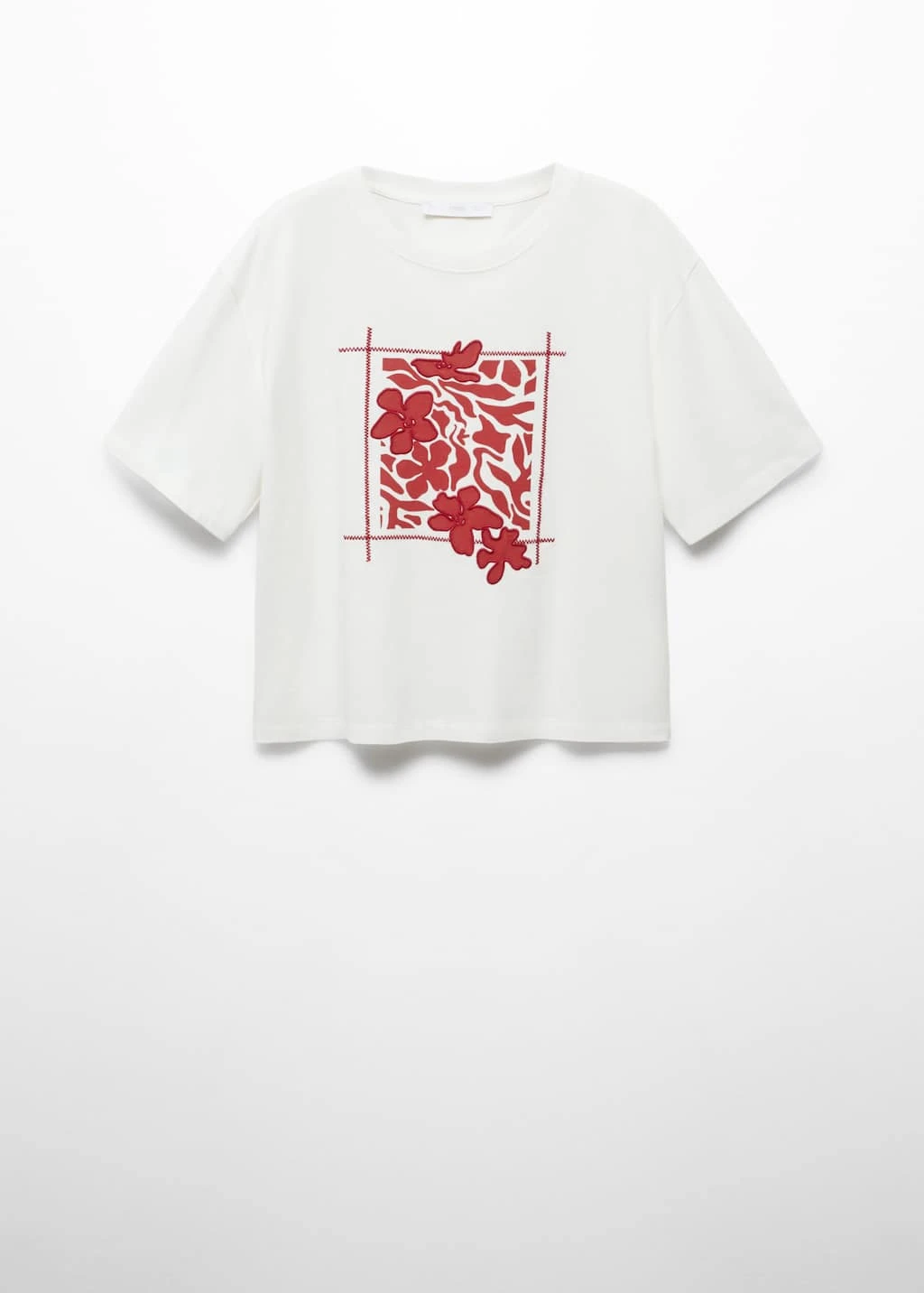 tissu 100 % coton, droit, imprime, col rond, manches courtes, details brodesComposition: 100% coton. Broderie: 100% polyester