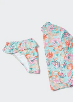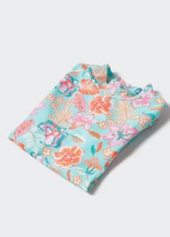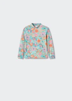 tissu en polyamide, imprime floral, col montant, manches longues, ce vetement est egalement disponible dans la collection femme., ce vetement est egalement disponible dans la collection kids girl. Composition: 87% polyamide,13% elasthanne