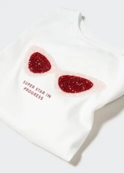 100 % coton, imprime, droit, detail en sequins, col rond, manches courtesComposition: 100% coton