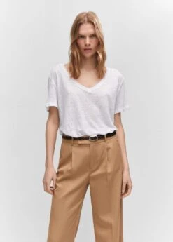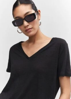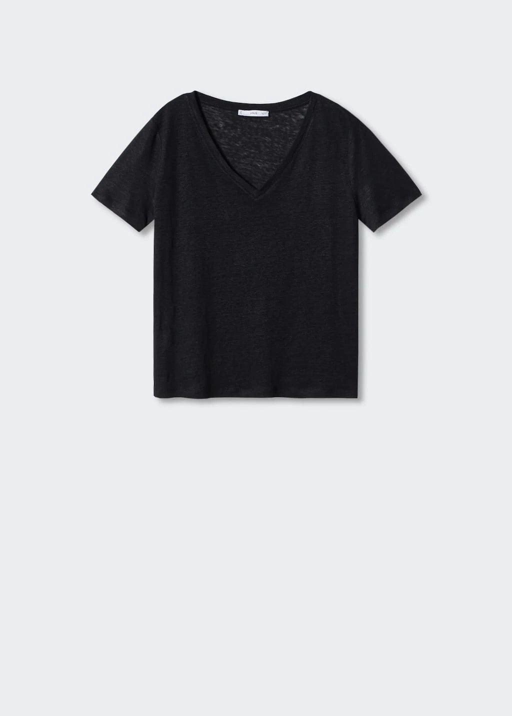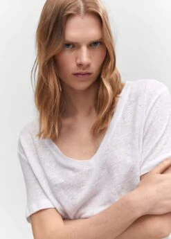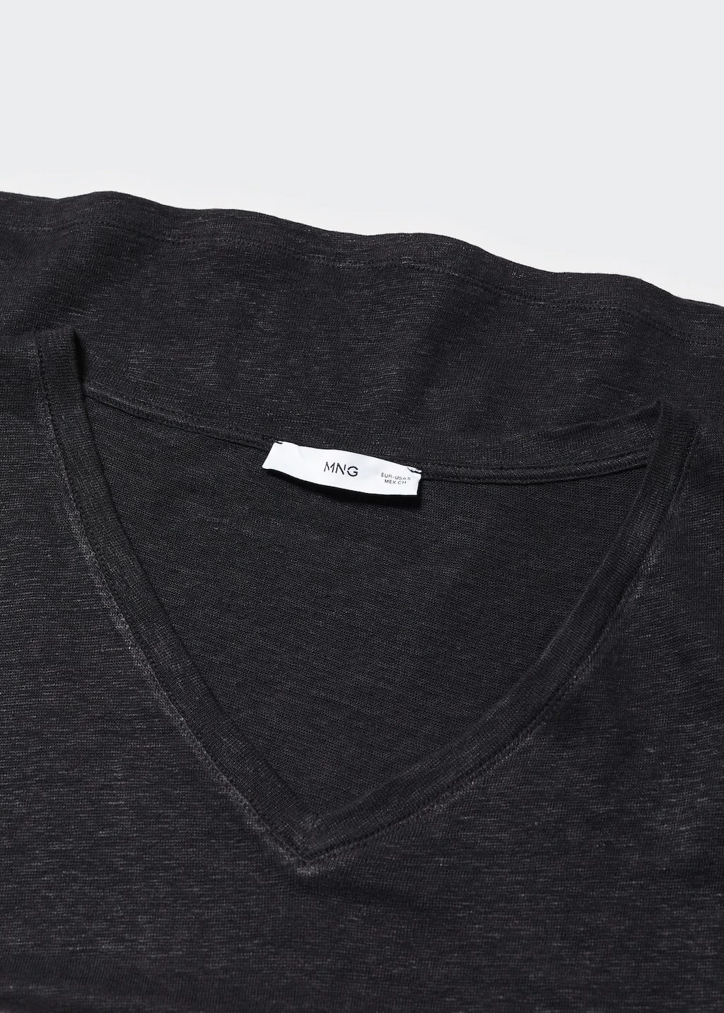 tissu 100Â % lin, coupe droite, col en v, manches courtes, sans fermeture, disponible plusComposition: 100% lin