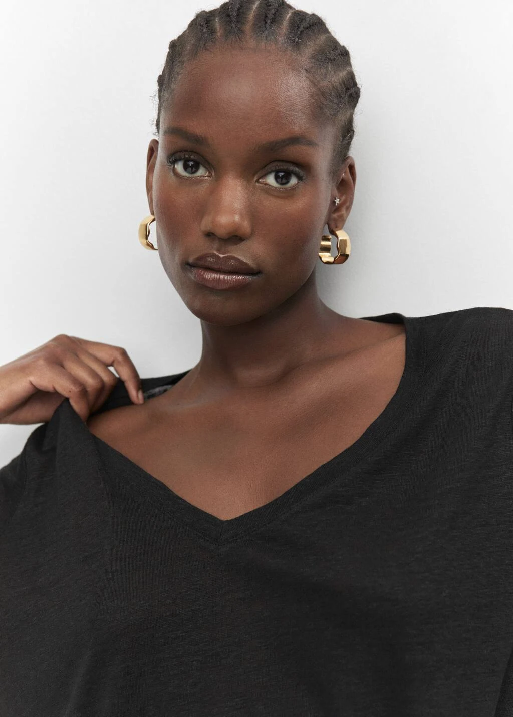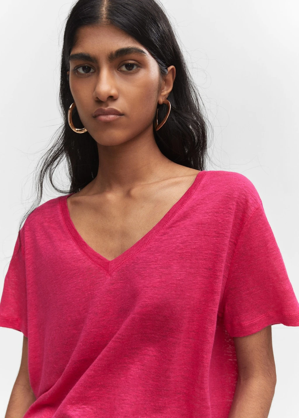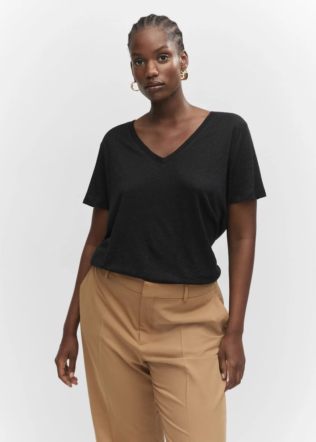 tissu 100Â % lin, coupe droite, col en v, manches courtes, sans fermeture, disponible plusComposition: 100% lin