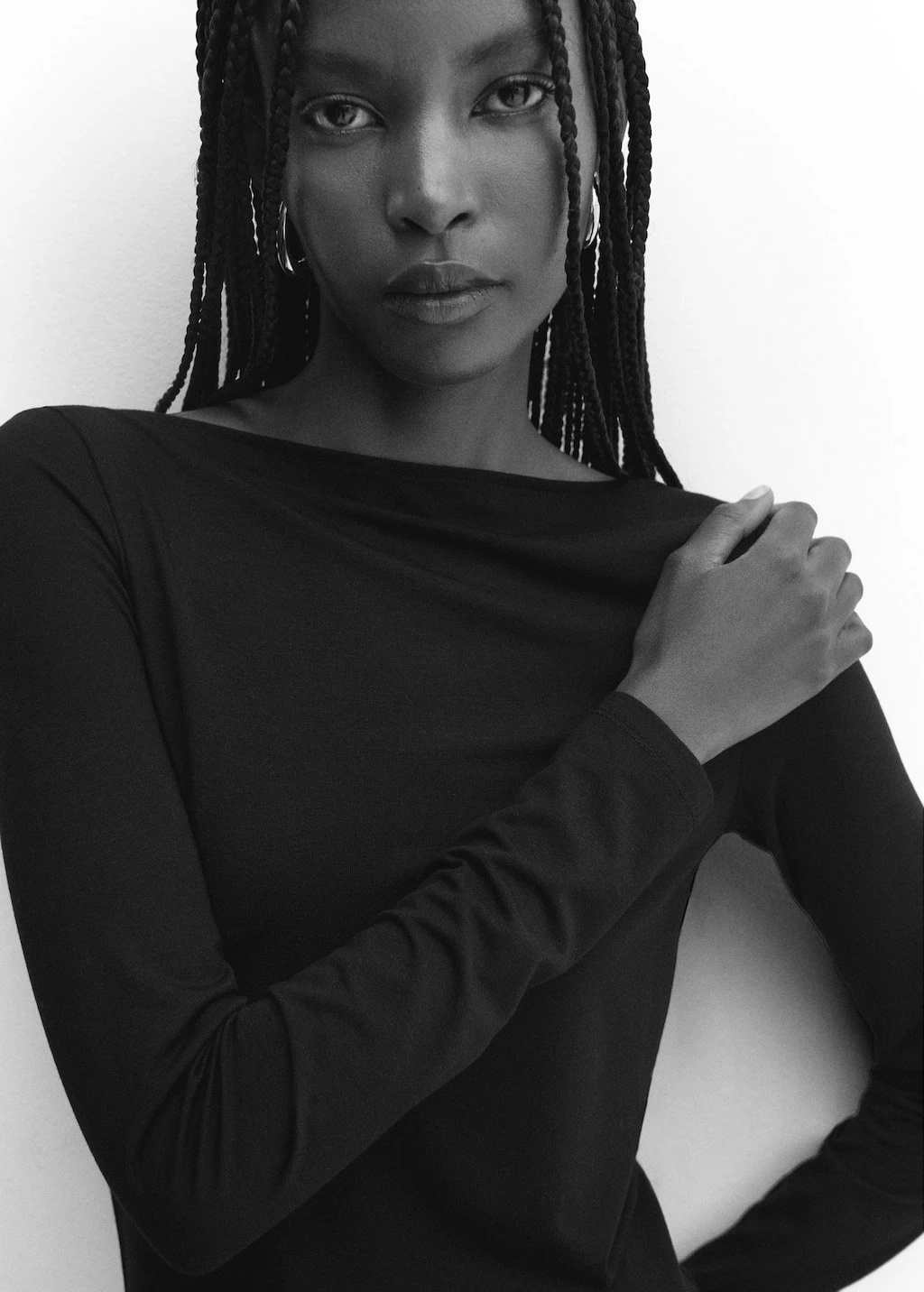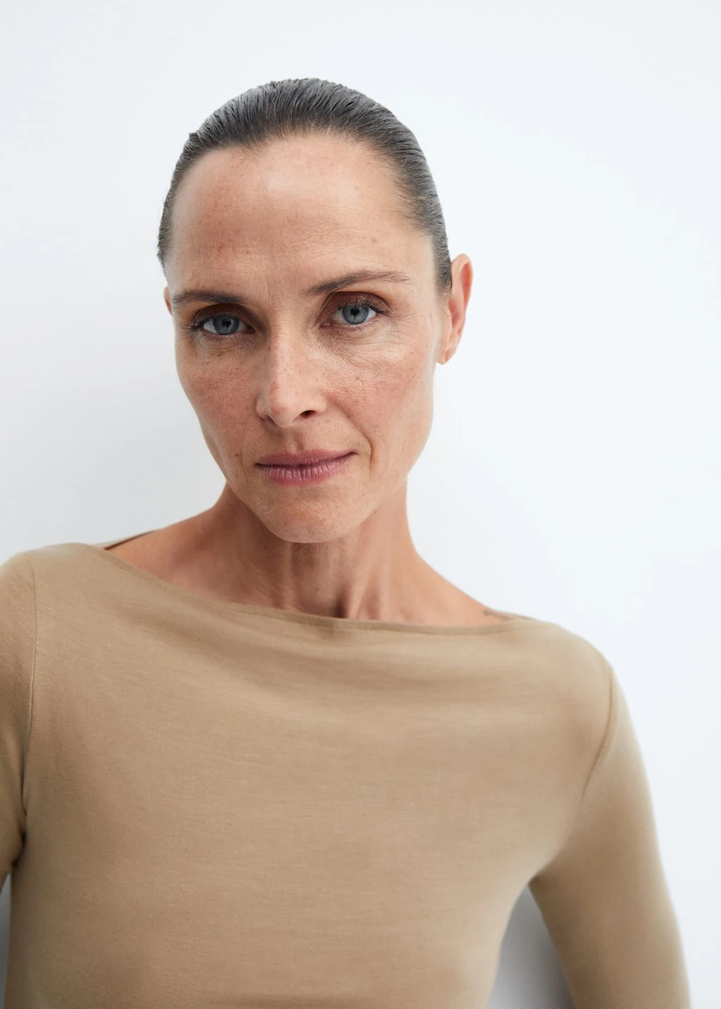 ajuste, col bateau, manches longuesComposition: 92% lyocell,8% elasthanne