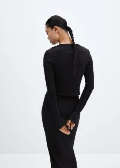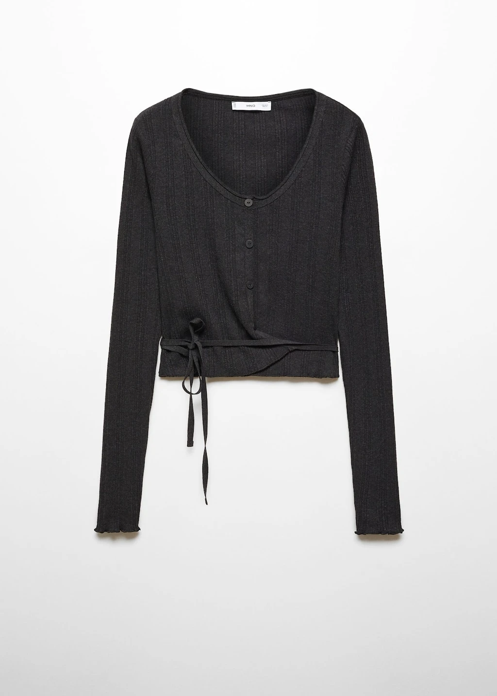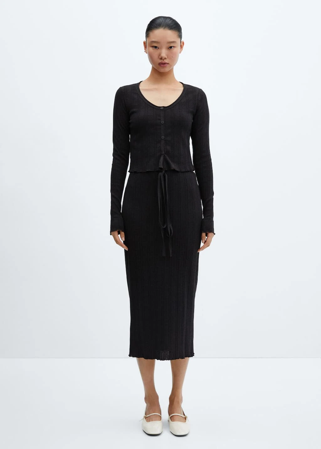 tissu en maille, ajuste, col rond, manches longues, fermeture boutonnee sur le devant, nĆud a la taille, total lookComposition: 47% polyester,46% coton,7% elasthanne