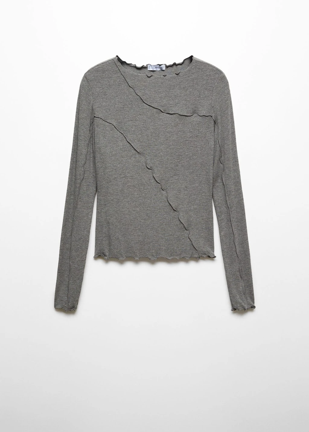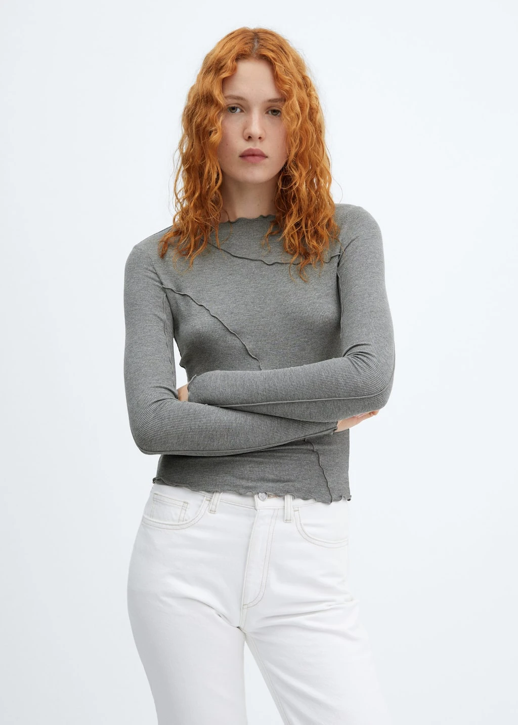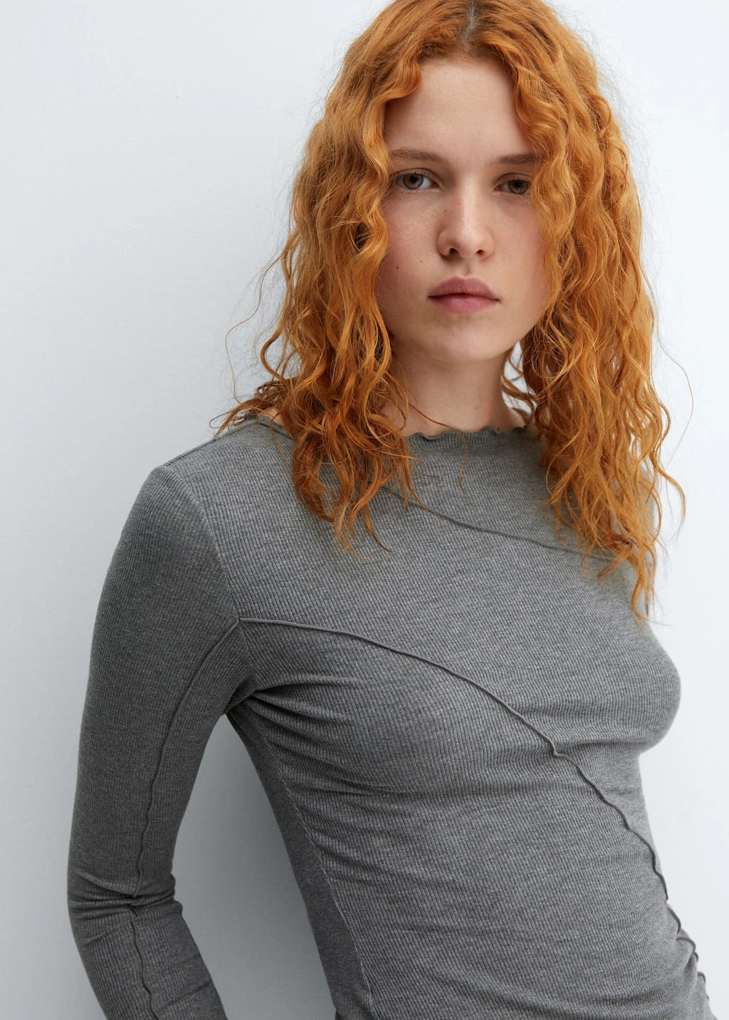 tissu en maille cotelee, droit, col rond, manches longues, coutures decorativesComposition: 95% viscose,5% elasthanne