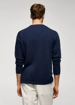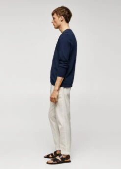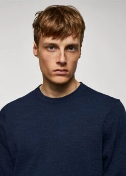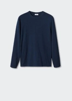 tissu de maille fine en coton, regular-fit, col rond, manches longues, coupe droite, bas droit, le mannequin mesure 190 cm et porte une taille mComposition: 62% coton,38% polyester