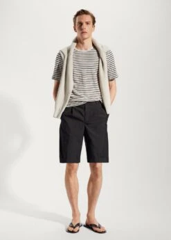 tissu de maille fine en coton, regular-fit, col rond, manches longues, coupe droite, bas droit, le mannequin mesure 190 cm et porte une taille mComposition: 62% coton,38% polyester