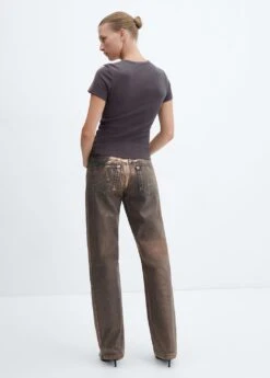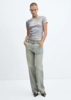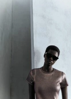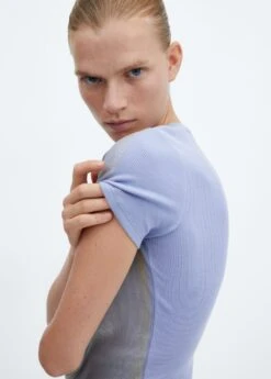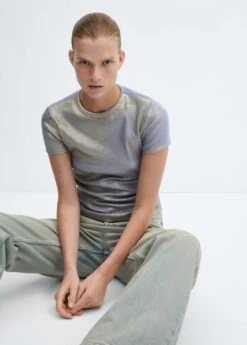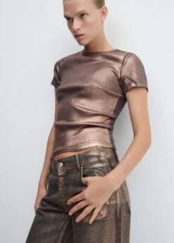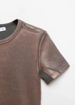 tissu de coton melange, finition metallisee, col rond, manches courtesComposition: 94% coton,6% elasthanne