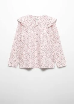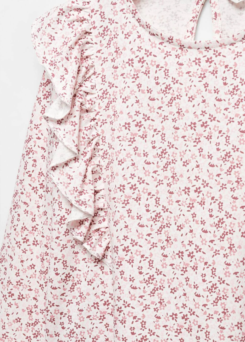 100 % coton, imprime fleurs, design volante a l’avant, droit, col rond, manches longues, fermeture a boutonComposition: 100% coton