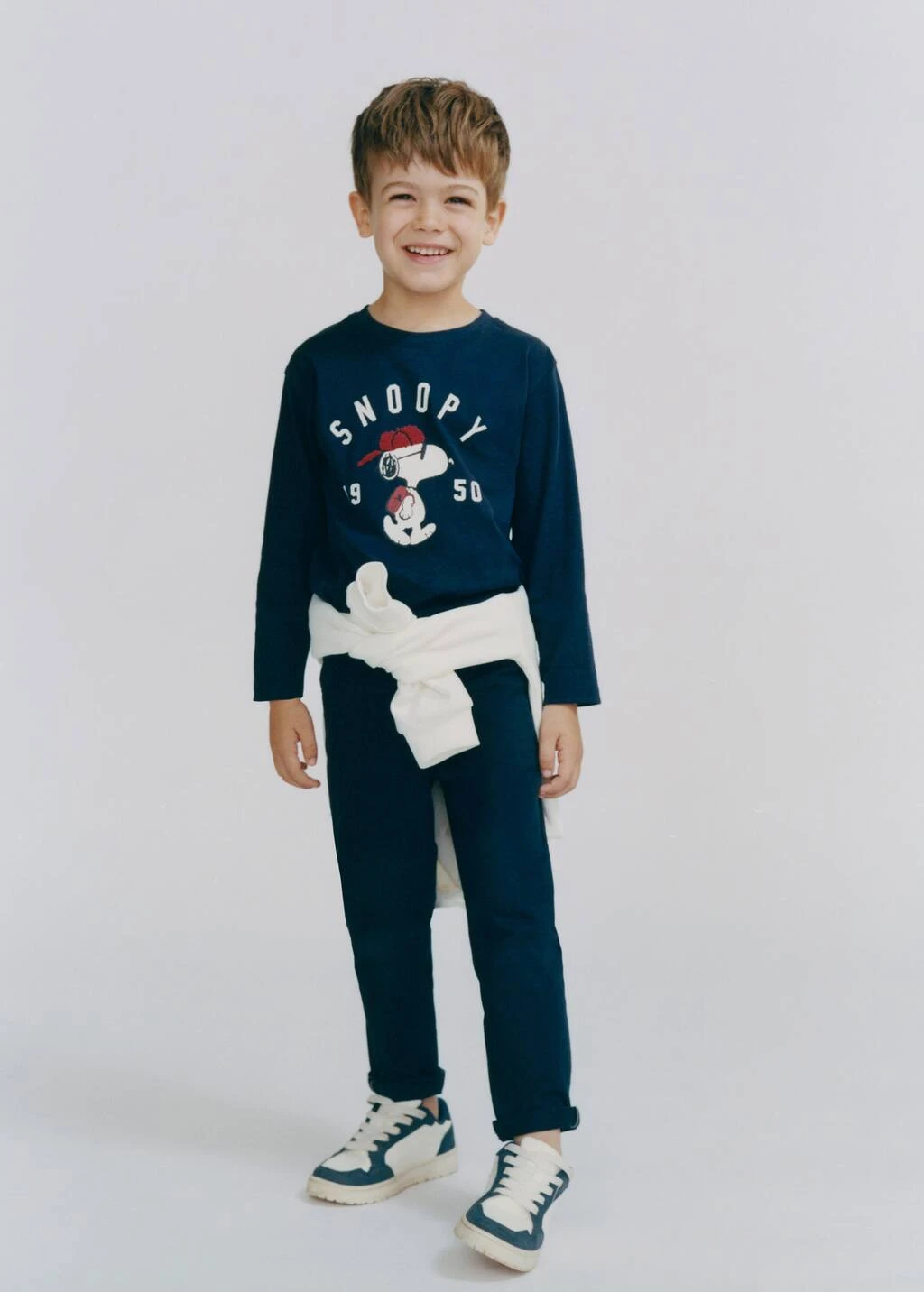 100 % coton, imprime snoopy, texture, col rond, manches longues, sans fermeture, licencesComposition: 100% coton