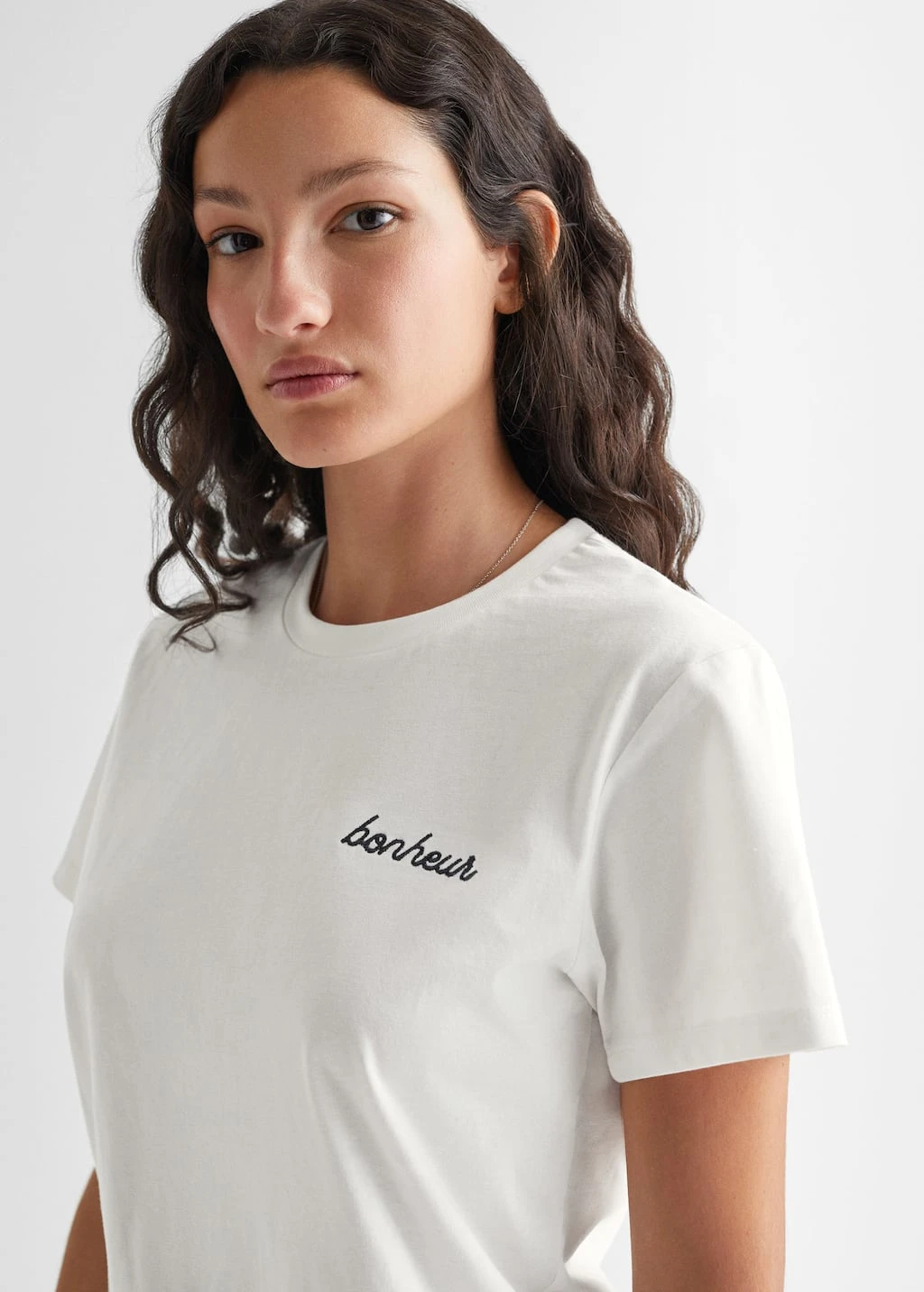 100 % coton, droit, col rond, manches courtes, detail brodeComposition: 100% coton