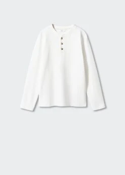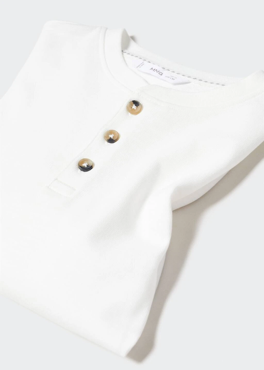 100 % coton, coupe droite, col rond, manches longues, col boutonneComposition: 100% coton