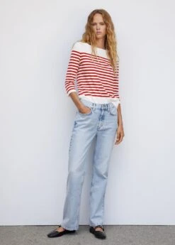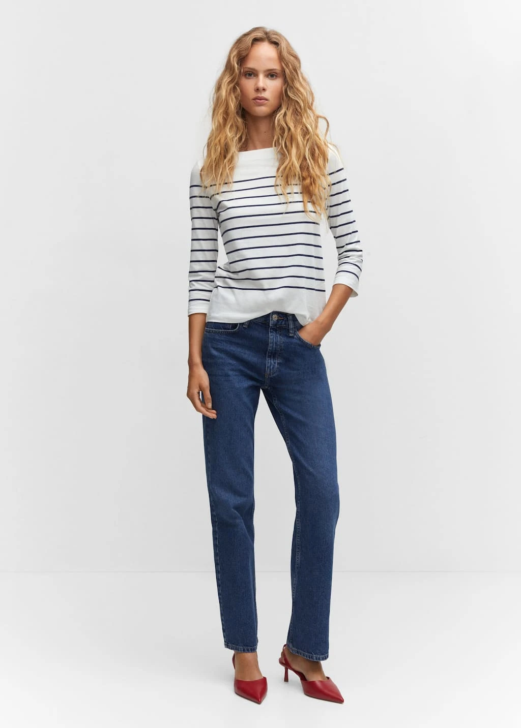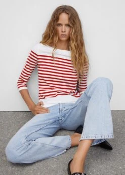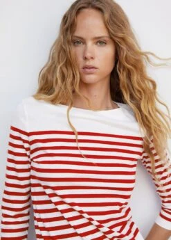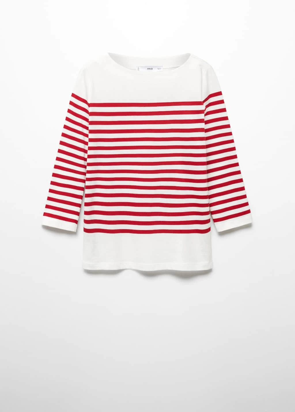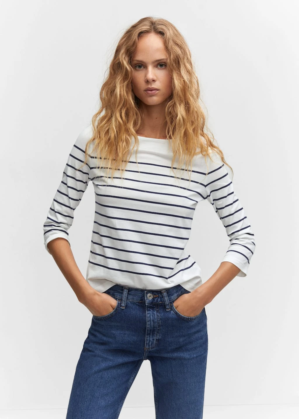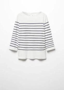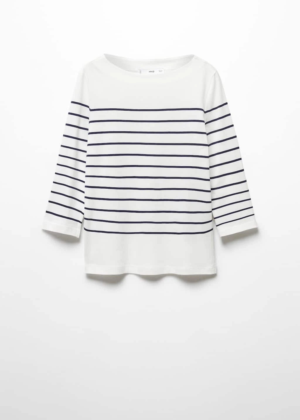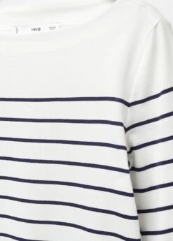 tissu 100Â % coton, coupe droite, motif raye, col bateau, manches longuesComposition: 100% coton