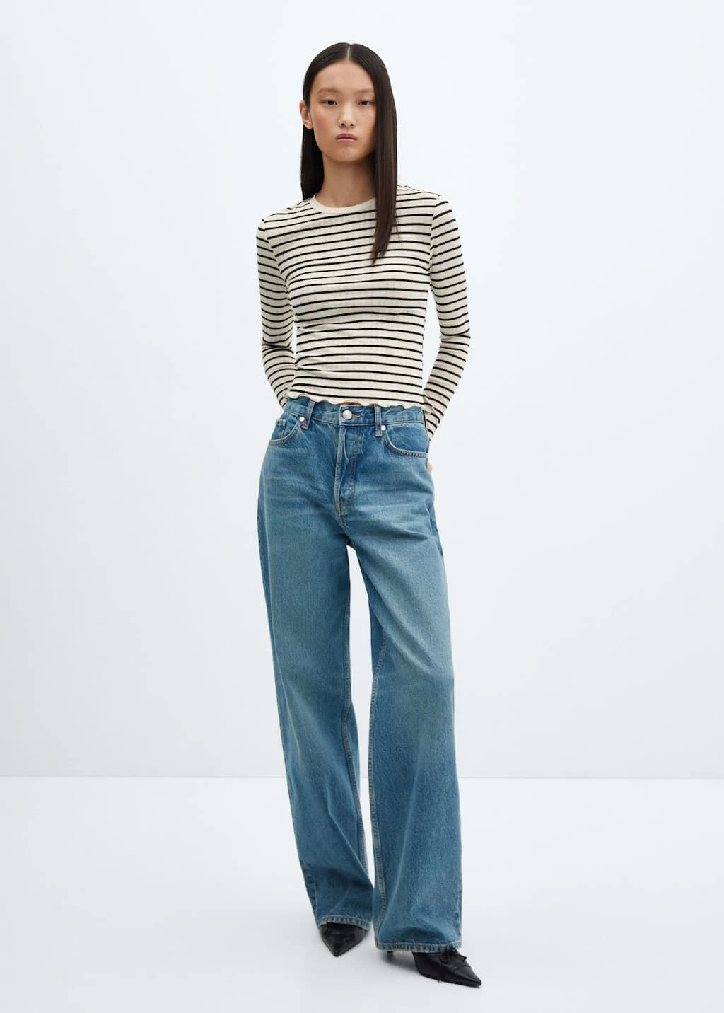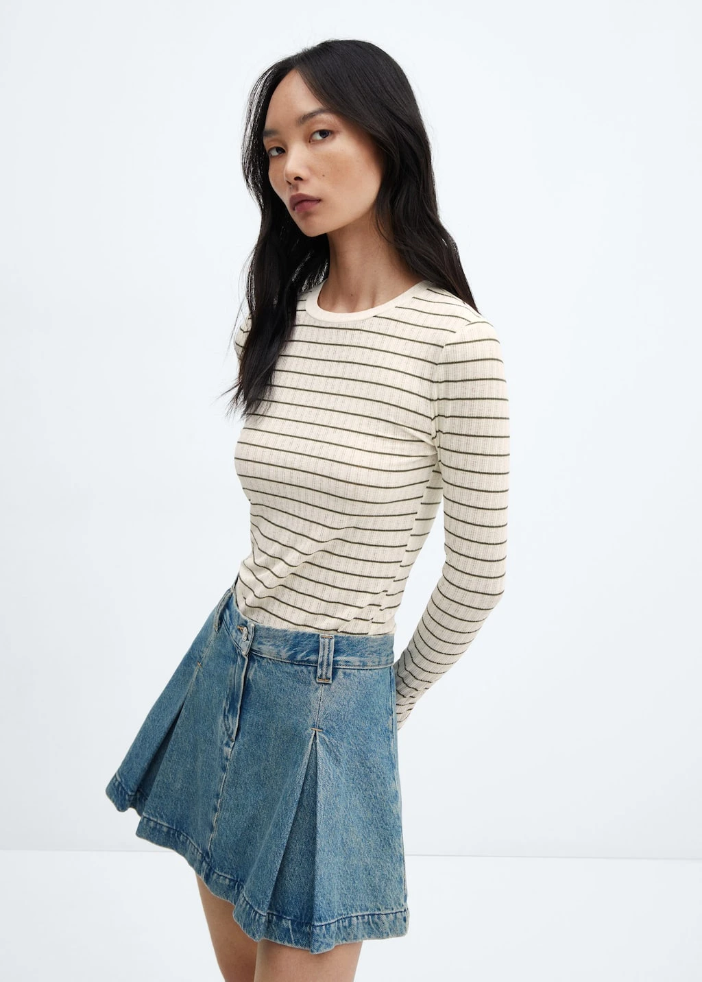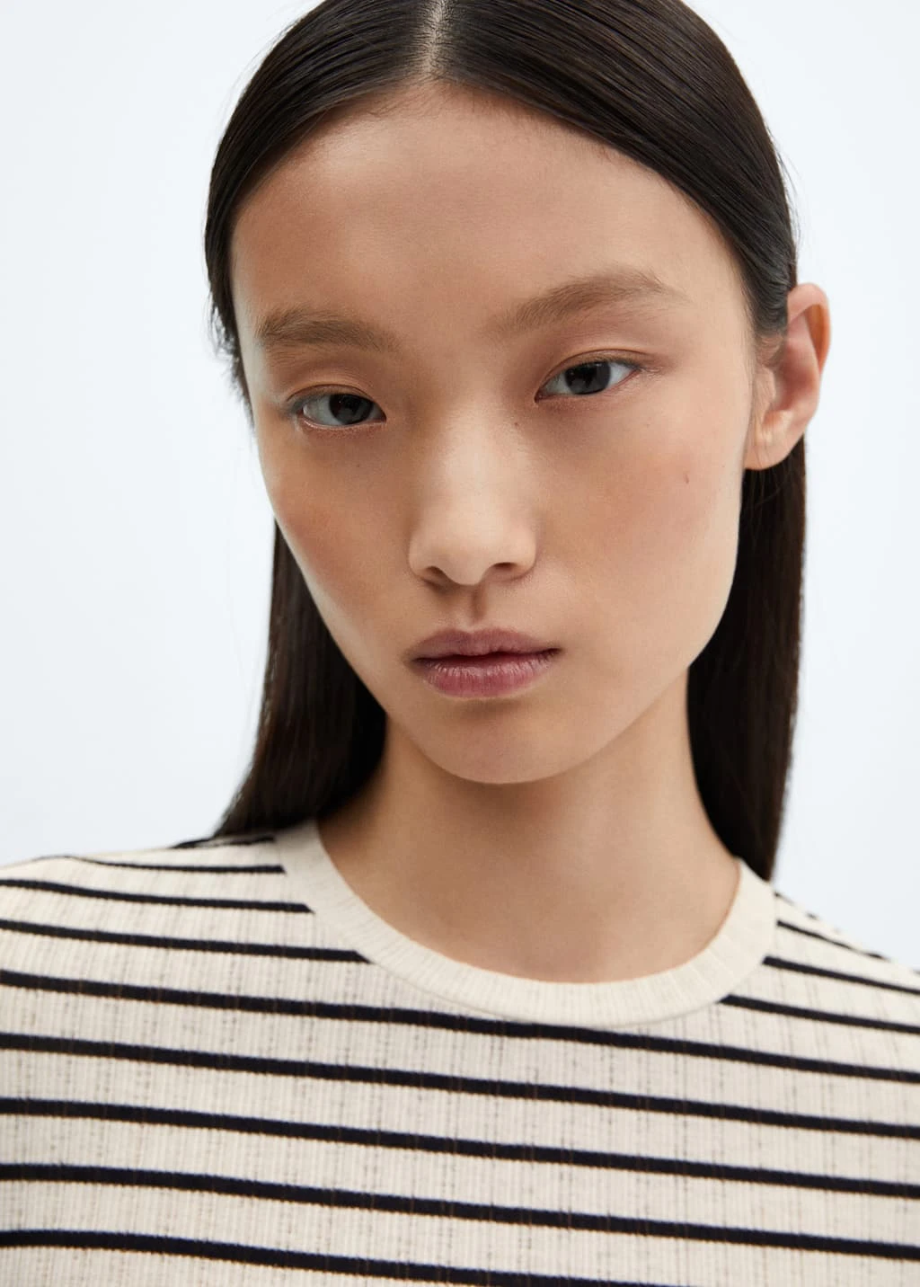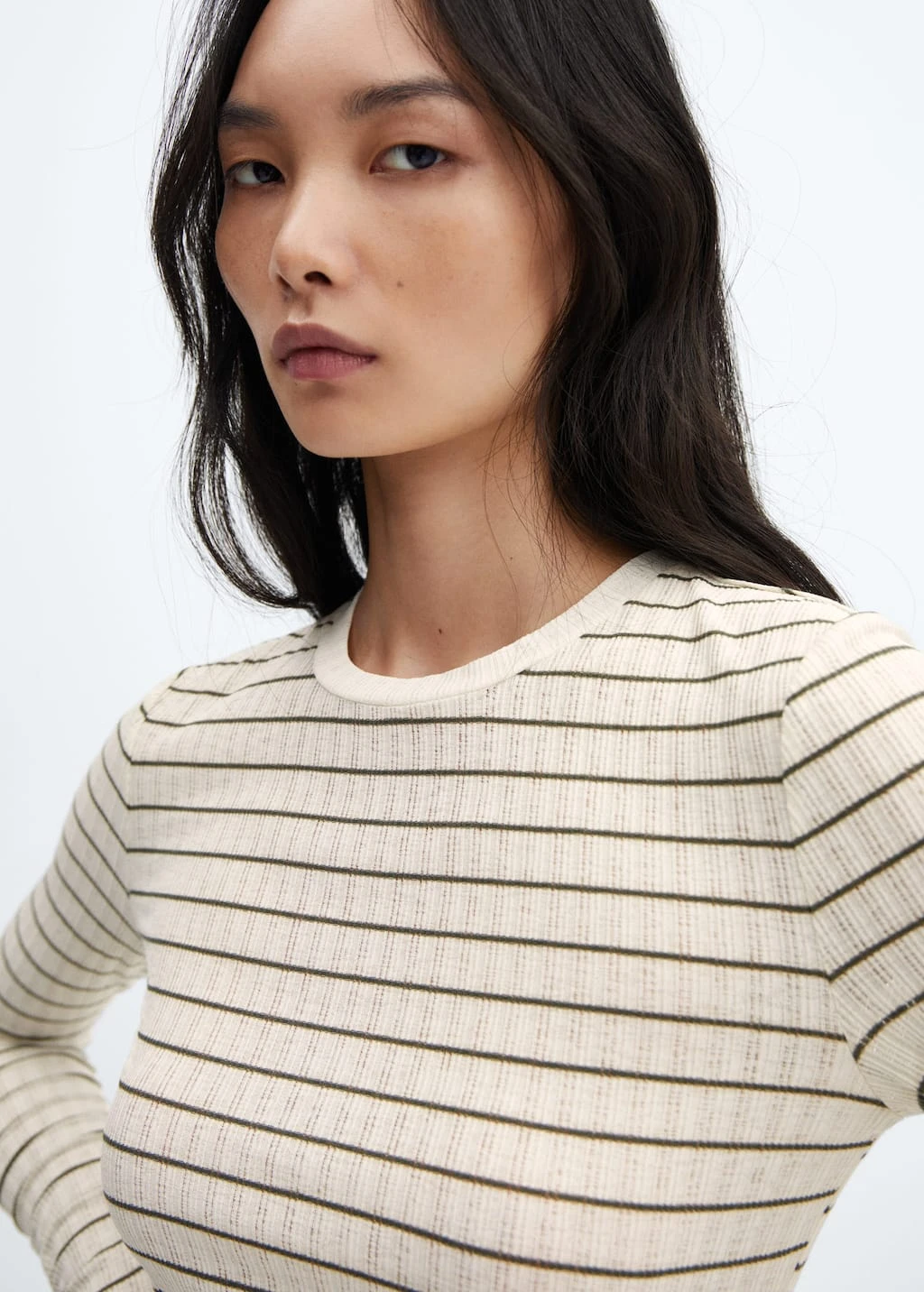texture, coupe cintree, imprime rayures, col rond, manches longues, base contrastanteComposition: 92% polyester,8% elasthanne