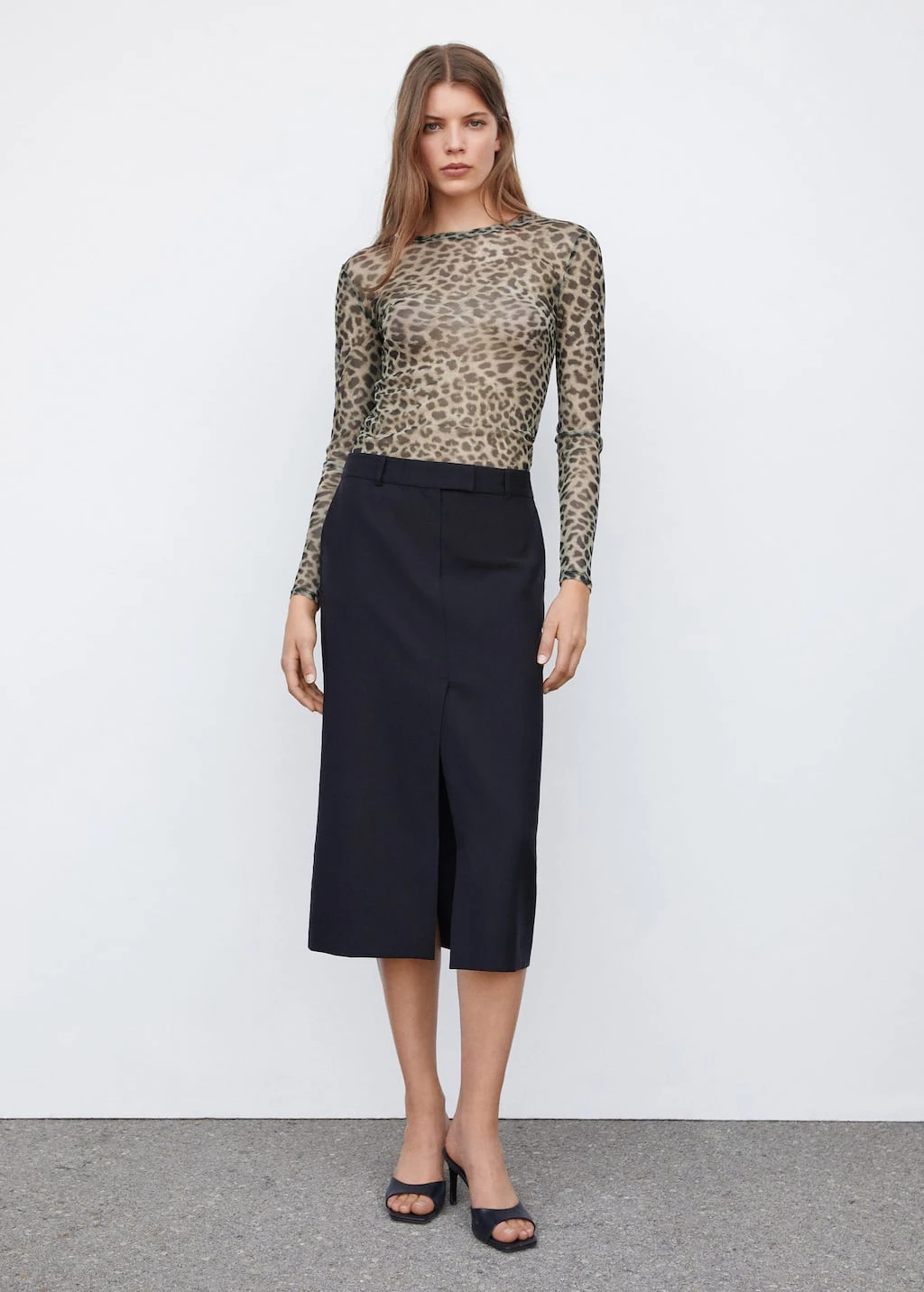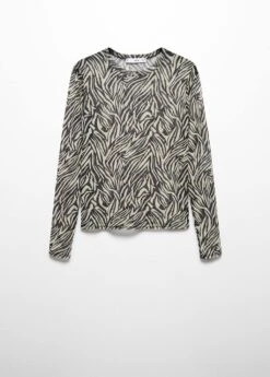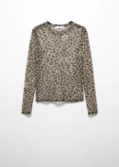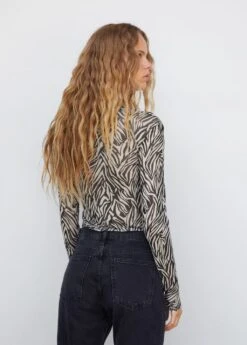 tissu semi-transparent, ajuste, imprime animal, col rond, manches longuesComposition: 94% polyester,6% elasthanne
