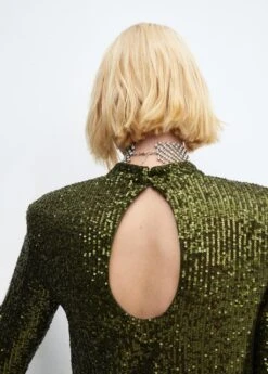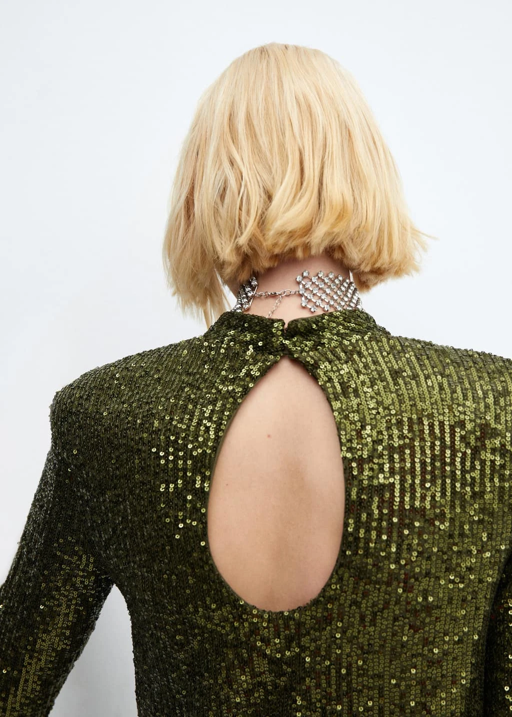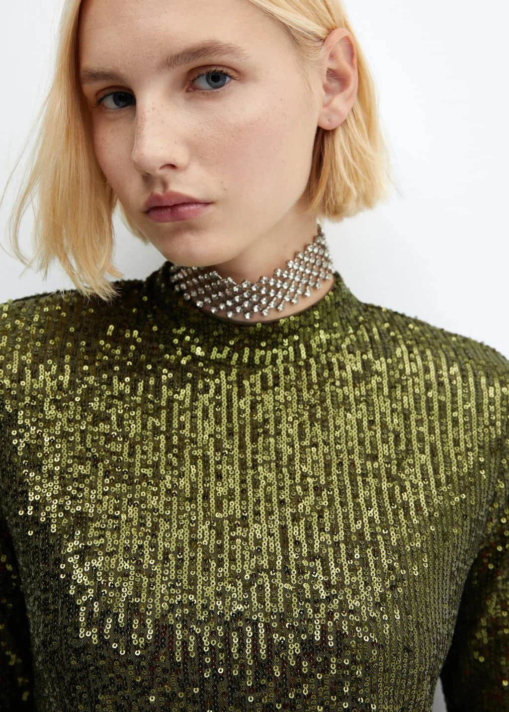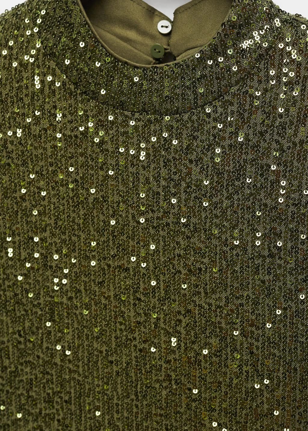 tissu en sequins, coupe droite, col montant, manches longues, col boutonne, boutons recouverts, doublure, collection fetes et ceremonies.Composition: 94% polyester,6% elasthanne. Doublure: 100% polyester. Sequin: 100% poly(tĂ©rĂ©phtalate d’Ă©thylĂšne)