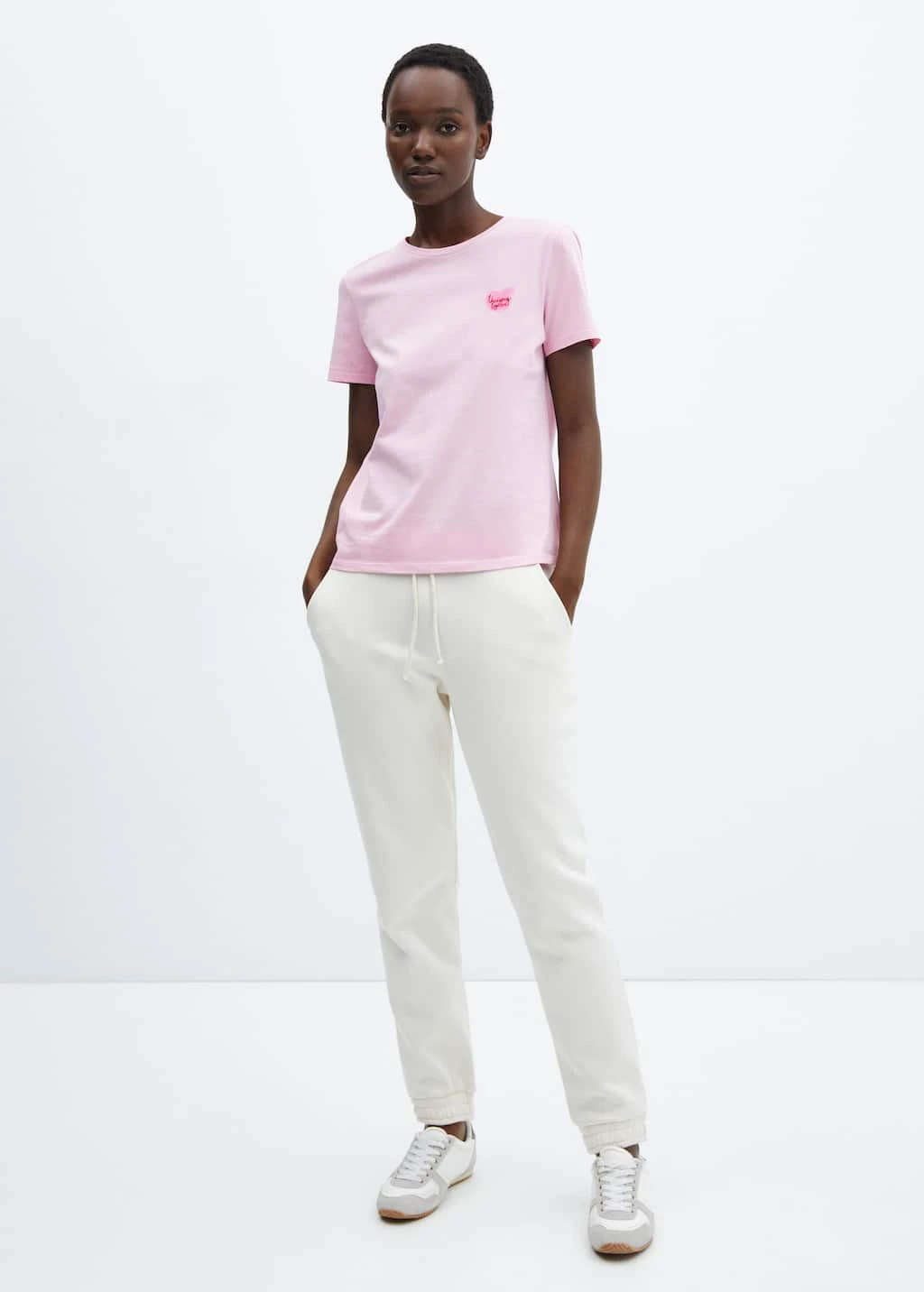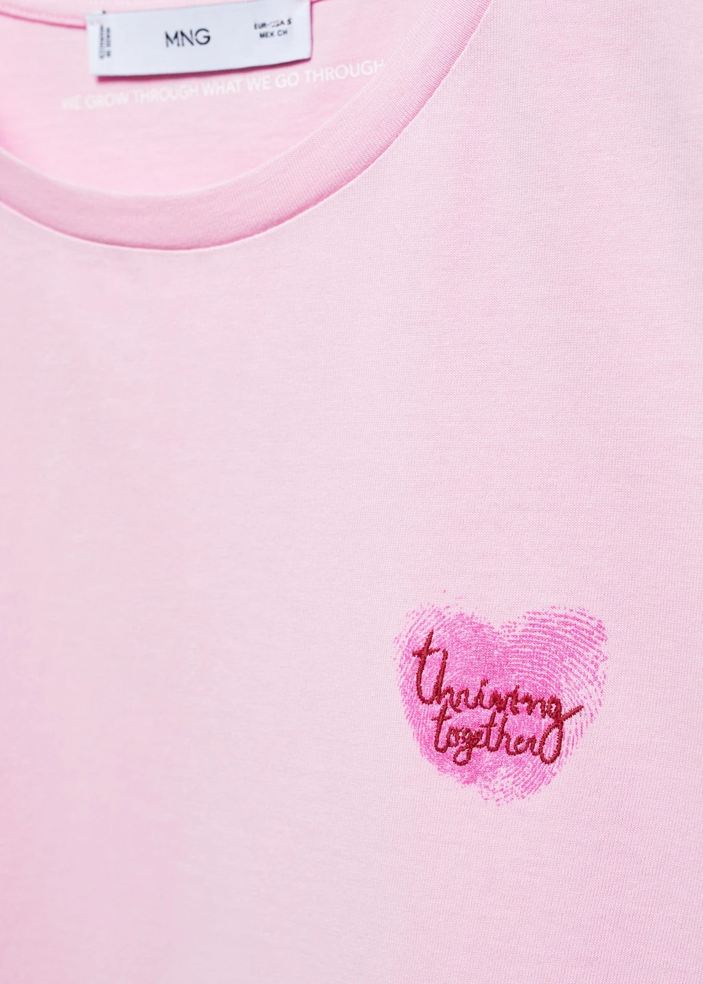 100 % coton, droit, col rond, manches courtes, message brode, celebrez avec nous et avec la fondation fero la journee internationale de la lutte contre le cancer du sein avec notre collection solidaire dont les benefices seront reverses pour aider la recherche contre le cancer.Composition: 100% coton