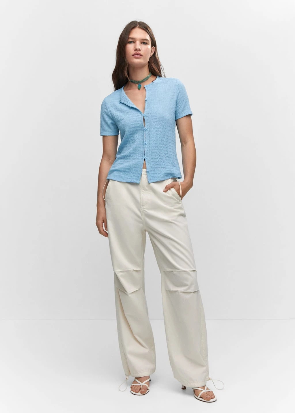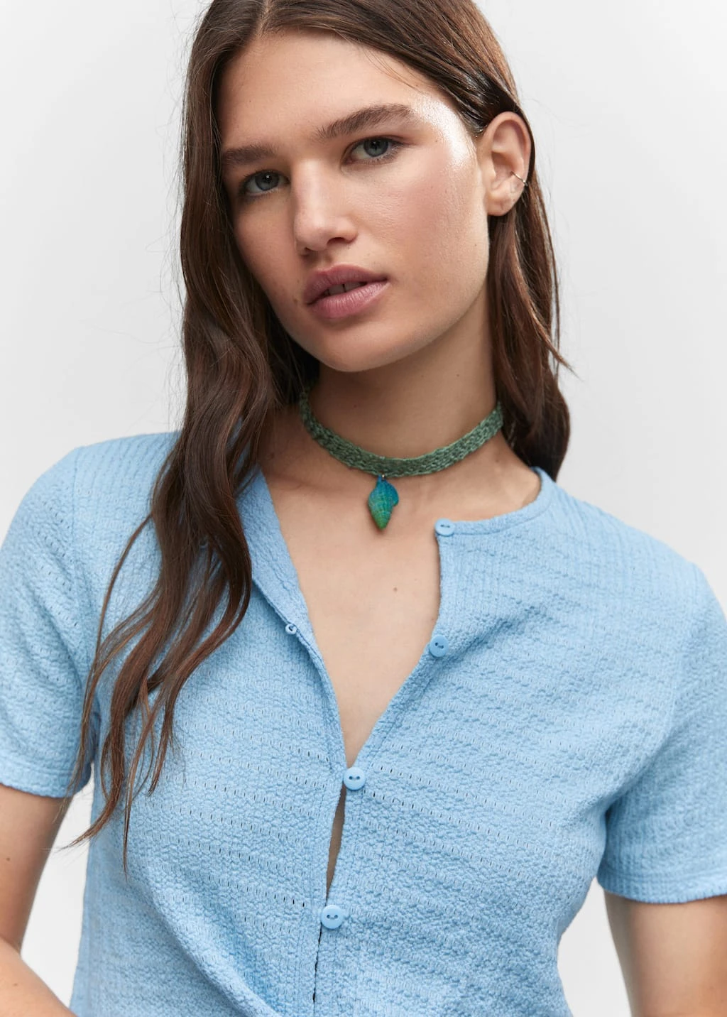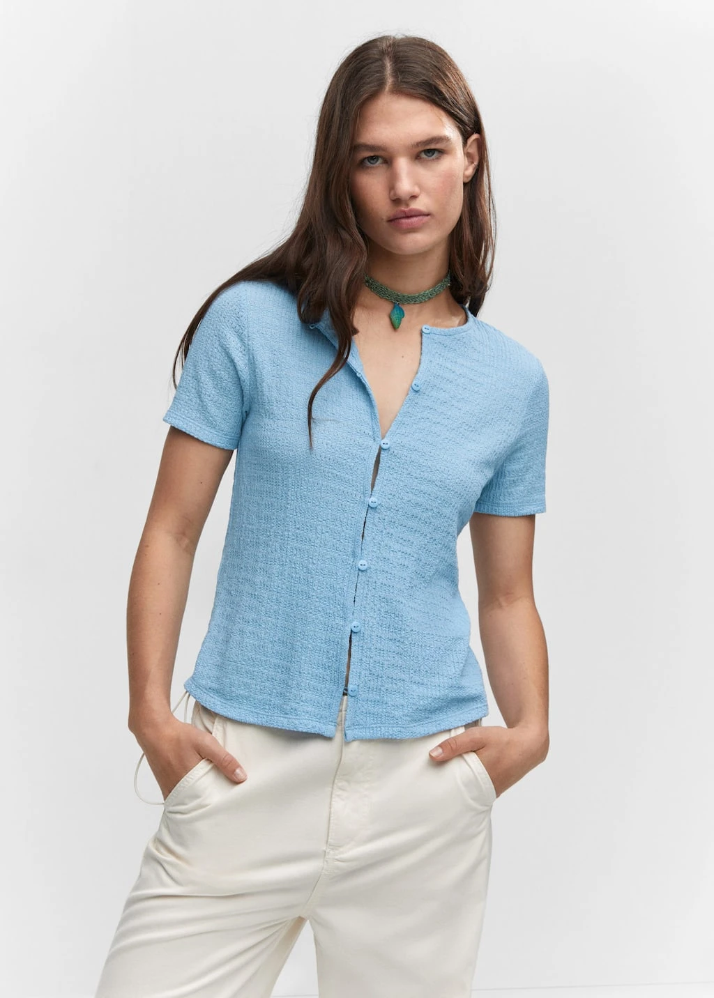 tissu texture, coupe droite, fermeture boutonnee, col rond, manches courtesComposition: 99% polyester,1% elasthanne