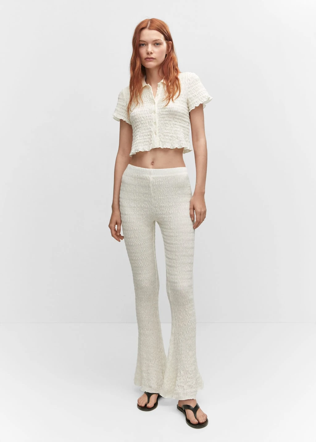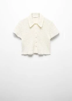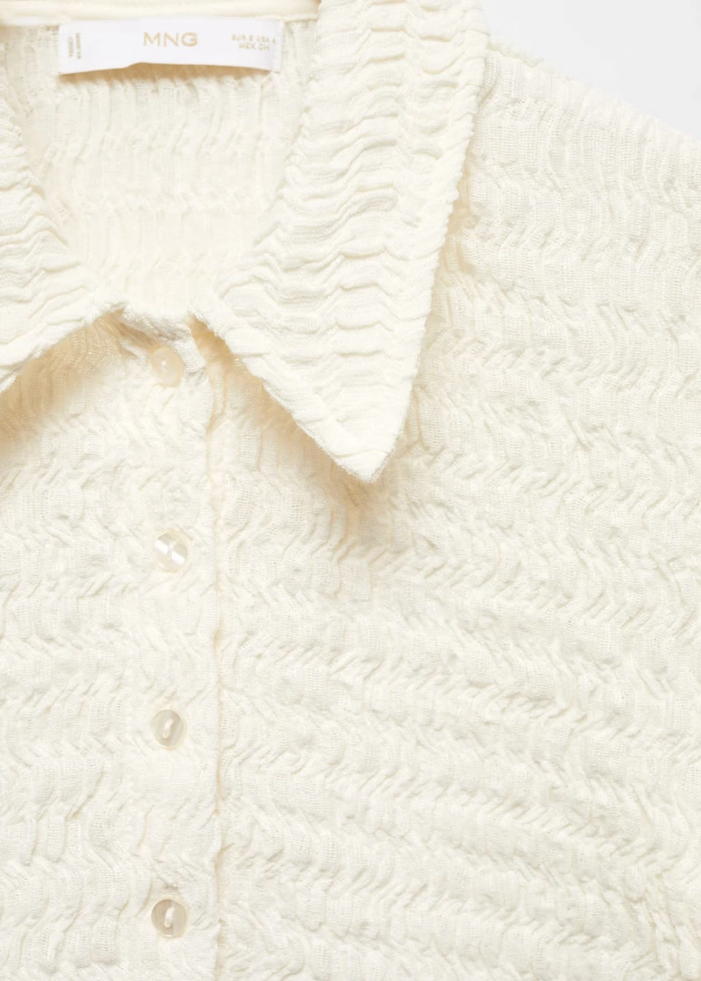 tissu de coton melange, tissu texture, coupe droite, style crop, col chemise, manches courtes, fermeture boutonnee sur le devant, total lookComposition: 64% coton,35% polyester,1% elasthanne