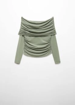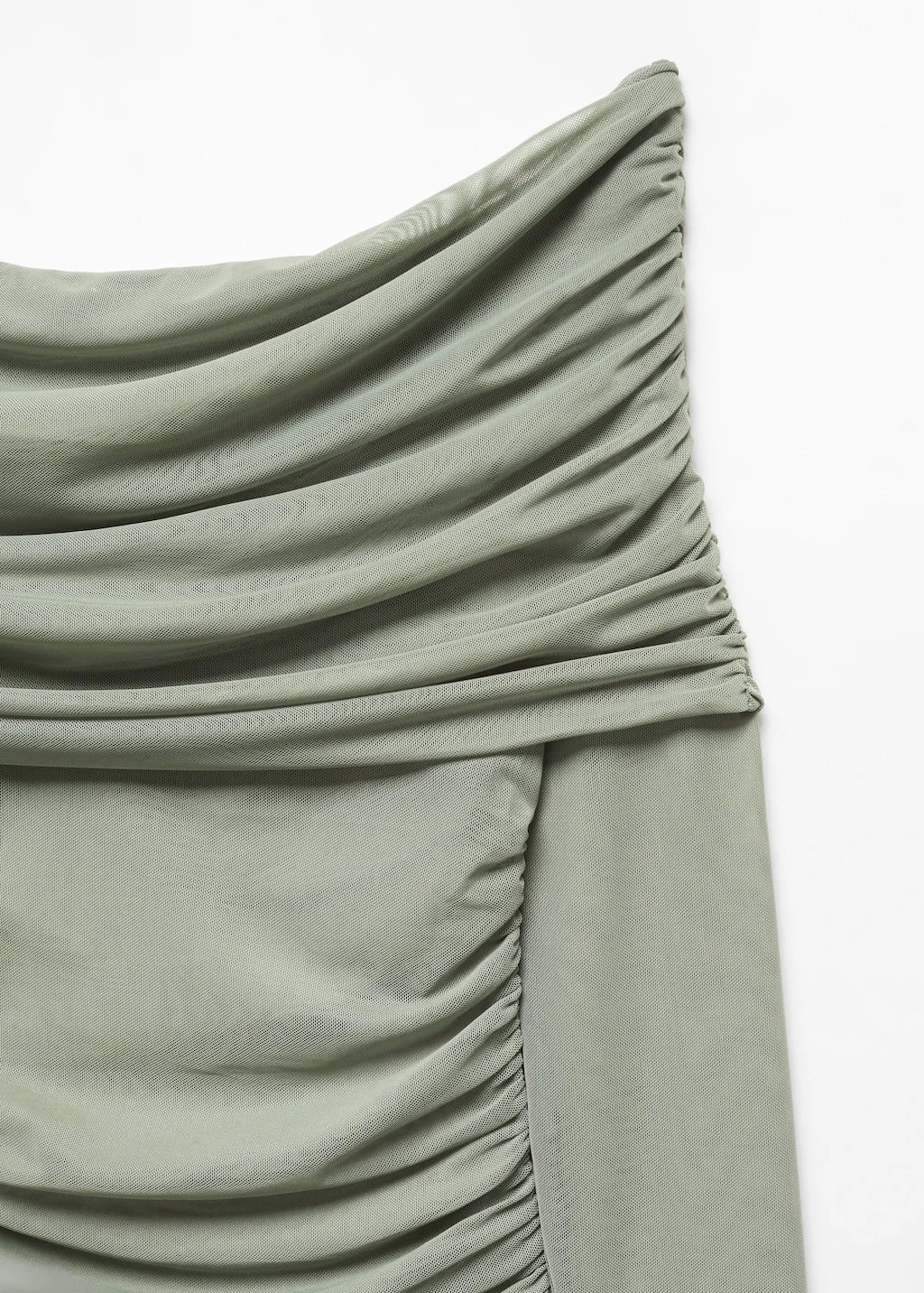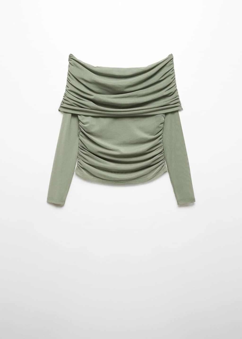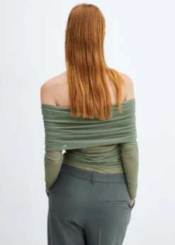 tissu en maille filet, tissu fronce, ajuste, epaules denudees, manches longues, sans fermetureComposition: 94% polyester,6% elasthanne