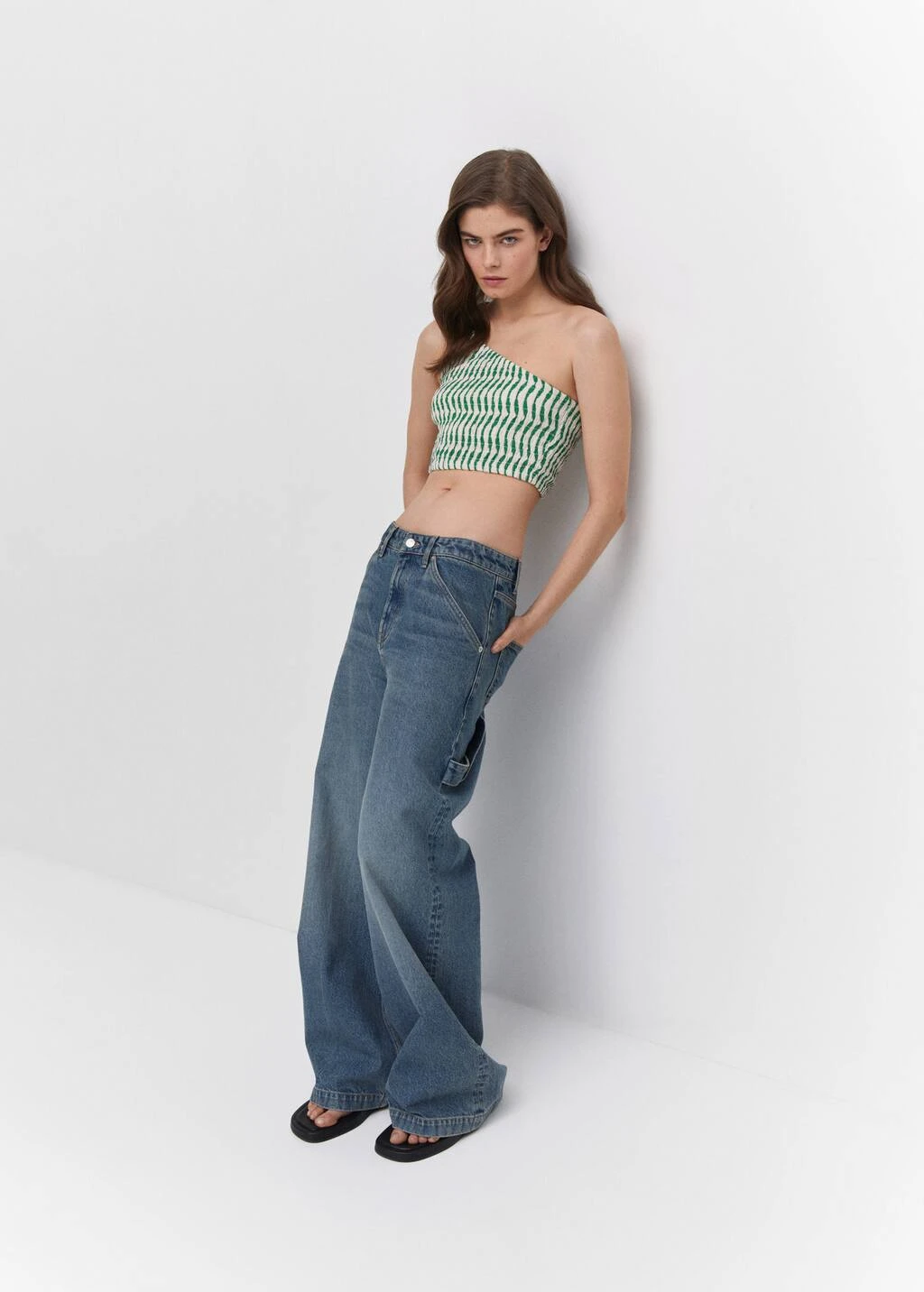 tissu elastique, fronce elastique, asymetrique, style crop, imprime, col asymetrique, bretelle large, sans fermeture, total look, saison des festivalsComposition: 85% viscose,15% polyamide. Doublure: 100% coton