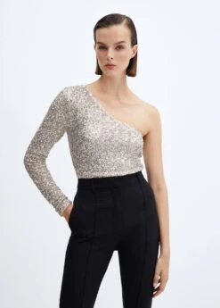 tissu en sequins, coupe asymetrique, manches longues, sans fermeture, doublure, collection fetes et ceremonies, total look.Composition: 94% polyester,6% elasthanne. Doublure: 94% polyester,6% elasthanne. Sequin: 100% poly(tĂ©rĂ©phtalate d’Ă©thylĂšne)