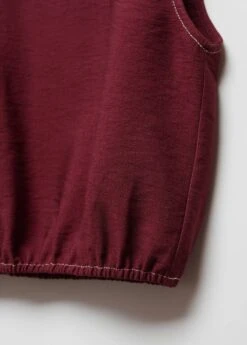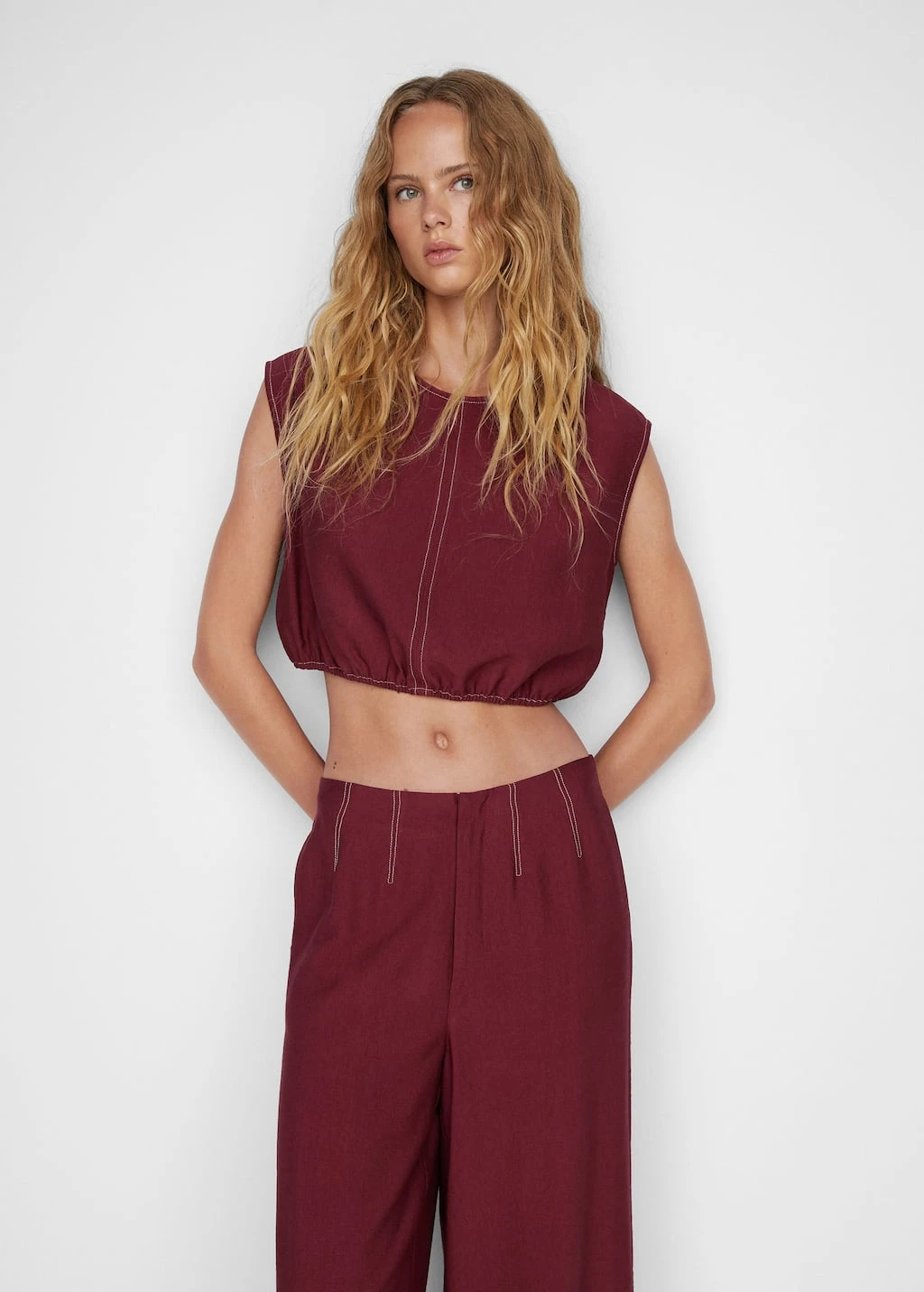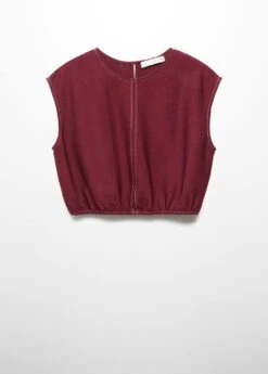 tissu fluide, forme bouffante, style crop, col rond, sans manches, bouton de fermeture a l’arriere, coutures decoratives contrastantes, total lookComposition: 86% viscose,14% polyamide