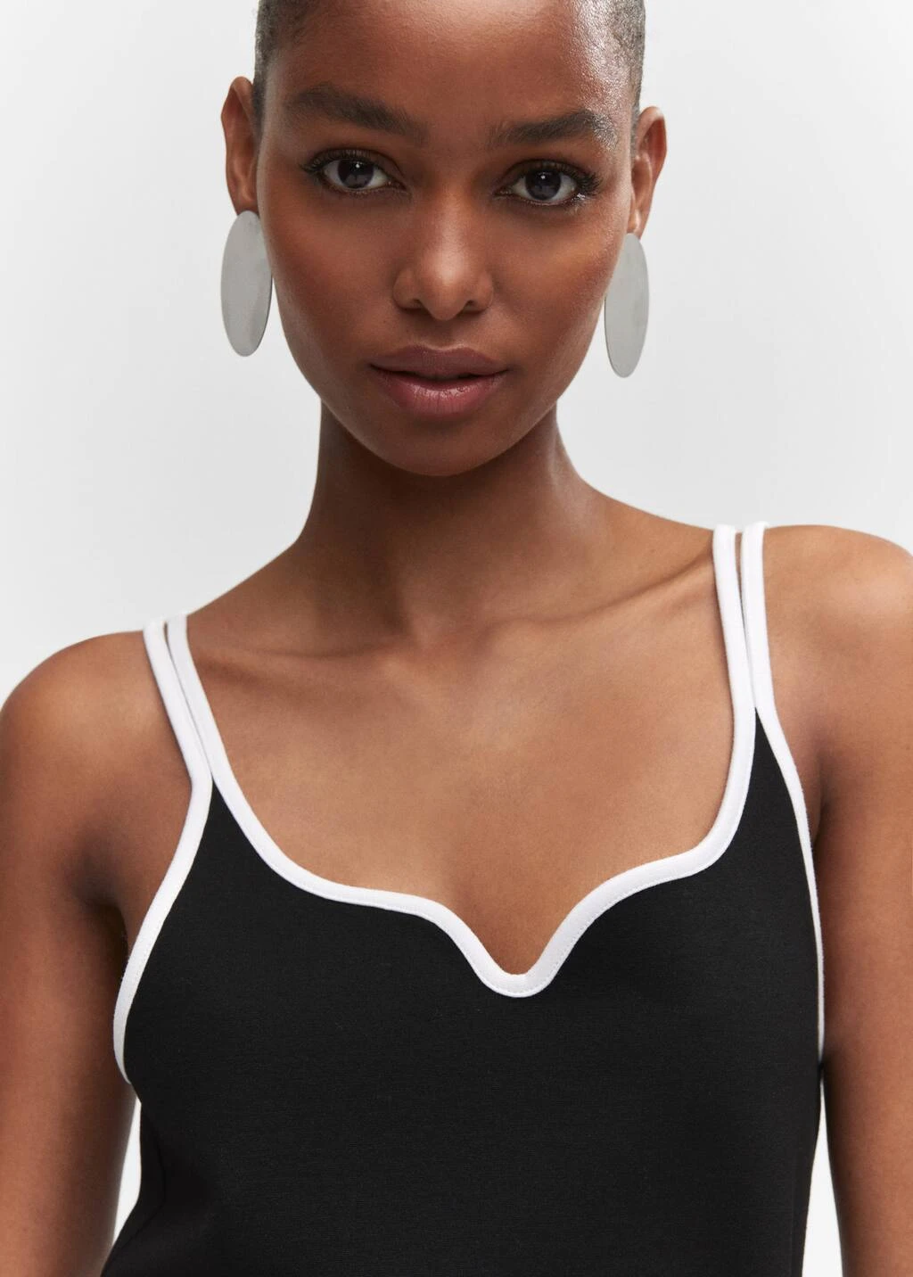 tissu fluide, coupe droite, bretelles fines, col echancre, bretelles fines doubles, bretelles contrastantesComposition: 70% viscose,25% polyamide,5% elasthanne