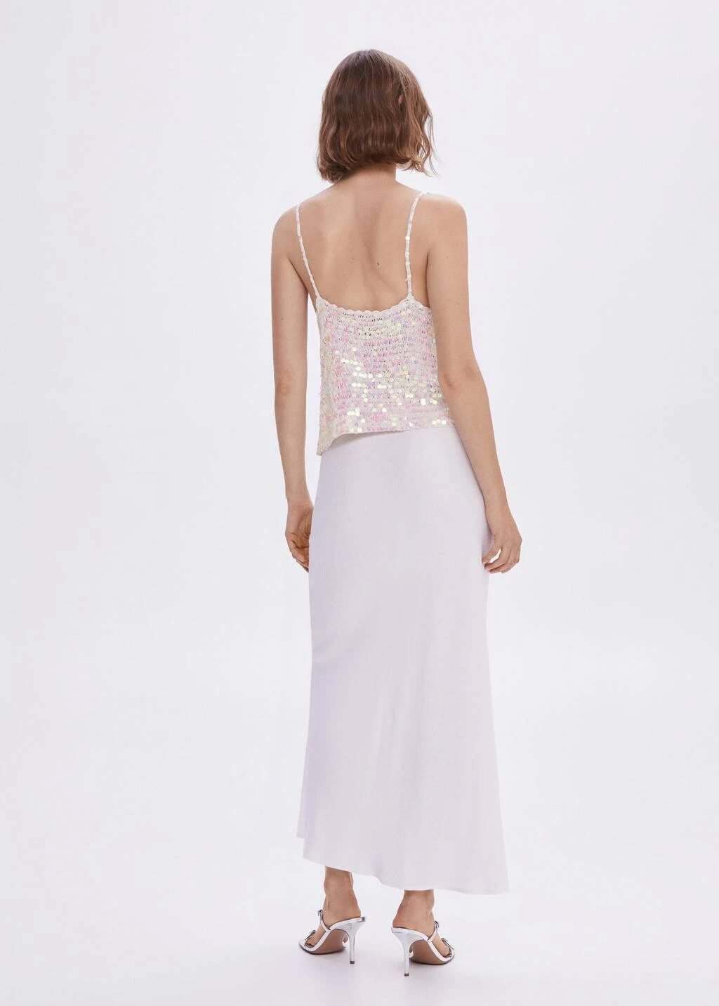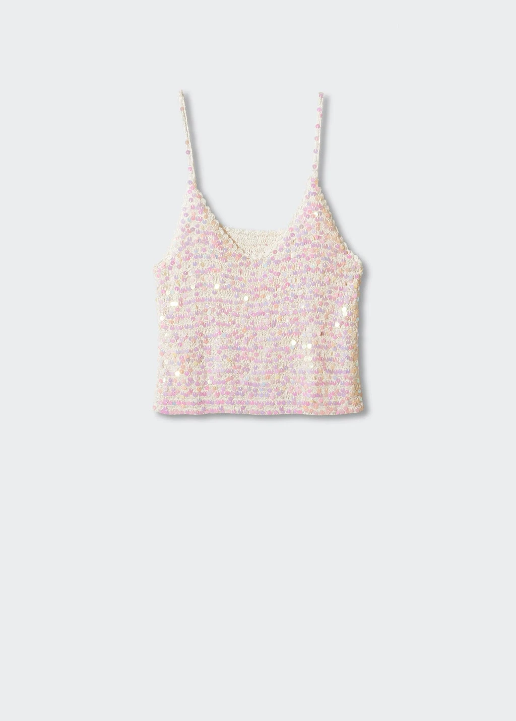 tissu a sequins, coupe cintree, style crop, col echancre, bretelles fines, sans fermeture, collection fetes et ceremonies, saison des festivals, une selection de pieces raffinees, fabriquees a partir de materiaux de qualite pour creer une garde-robe feminine et contemporaine pour les grandes occasionsComposition: 100% viscose