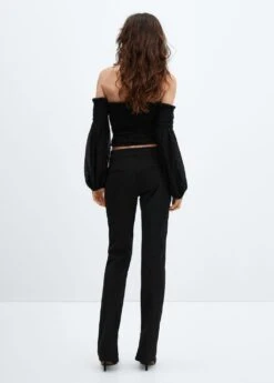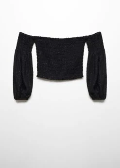 tissu elastique, style crop, ajuste, finition brillante, bustier, epaules denudees, manches longues avec poignets elastiques, manches bouffantes, sans fermeture, collection fetes et ceremonies.Composition: 100% polyester. Doublure: 100% polyester