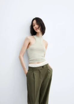 tissu fluide, ajuste, emmanchures americaines, bretelles larges, sans manchesComposition: 95% polyester,5% elasthanne
