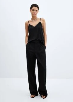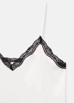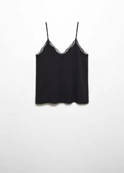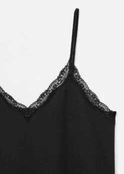 tissu fluide, coupe droite, col en v, sans manches, bretelles fines, detail dentelle.Composition: 95% polyester,5% elasthanne. Dentelle: 81% polyamide,19% elasthanne