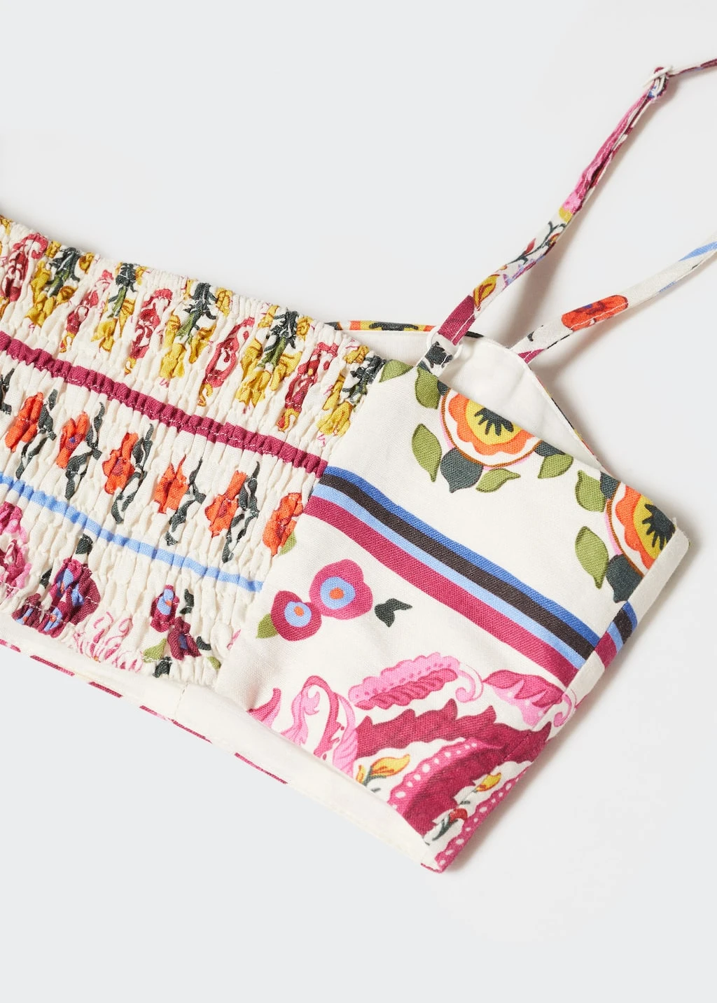 tissu de coton et lin melange, coupe courte, ajuste, imprime, encolure en cĆur, bretelles fines ajustables, bande elastique, elastique a l’arriere, total look, saison des festivalsComposition: 55% lin,45% coton. Doublure: 100% coton