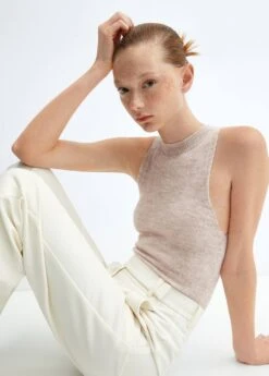 tissu de laine melange, maille moyenne, droit, col rond, sans manches, bords cotelesComposition: 60% acrylique,31% polyester,9% laine