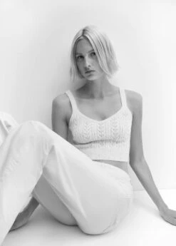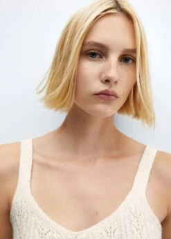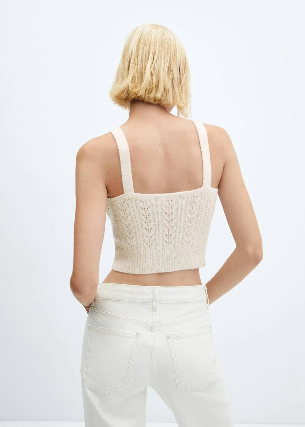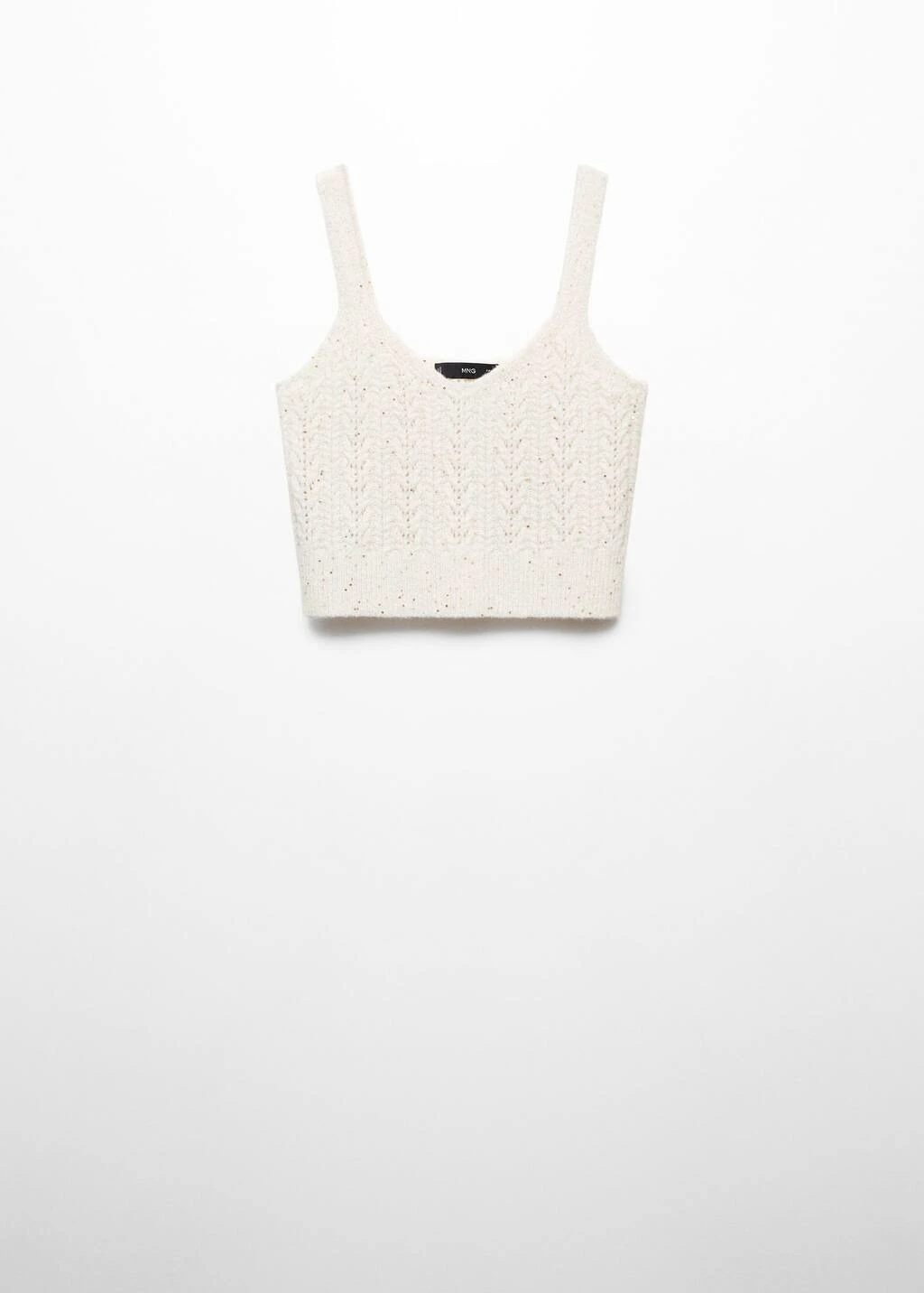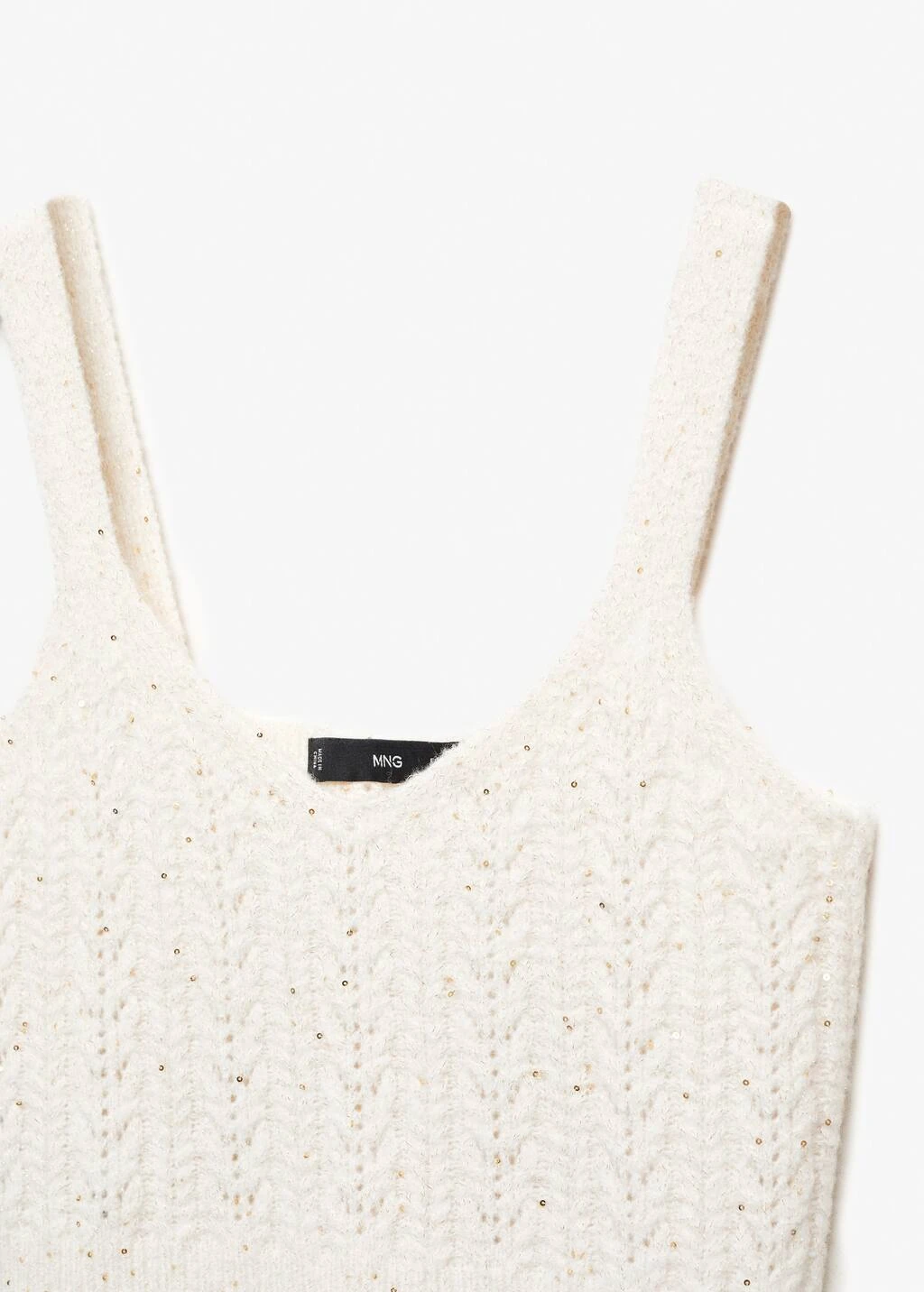 tissu de laine melange, tissu en grosse maille, style crop, coupe cintree, col en v, sans manches, bretelles larges, broderie a sequins, details en lurex, bords coteles, total look.Composition: 34% acrylique,29% polyester,24% polyamide,6% laine,4% polyester avec revĂȘtement de cuivre,3% elasthanne