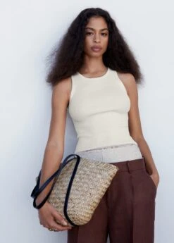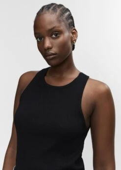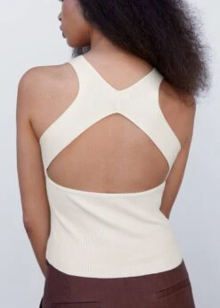 tissu en maille fine, ajuste, style crop, col rond, bretelles larges, ouverture au dos, sans fermeture, disponible plusComposition: 72% viscose,28% polyamide