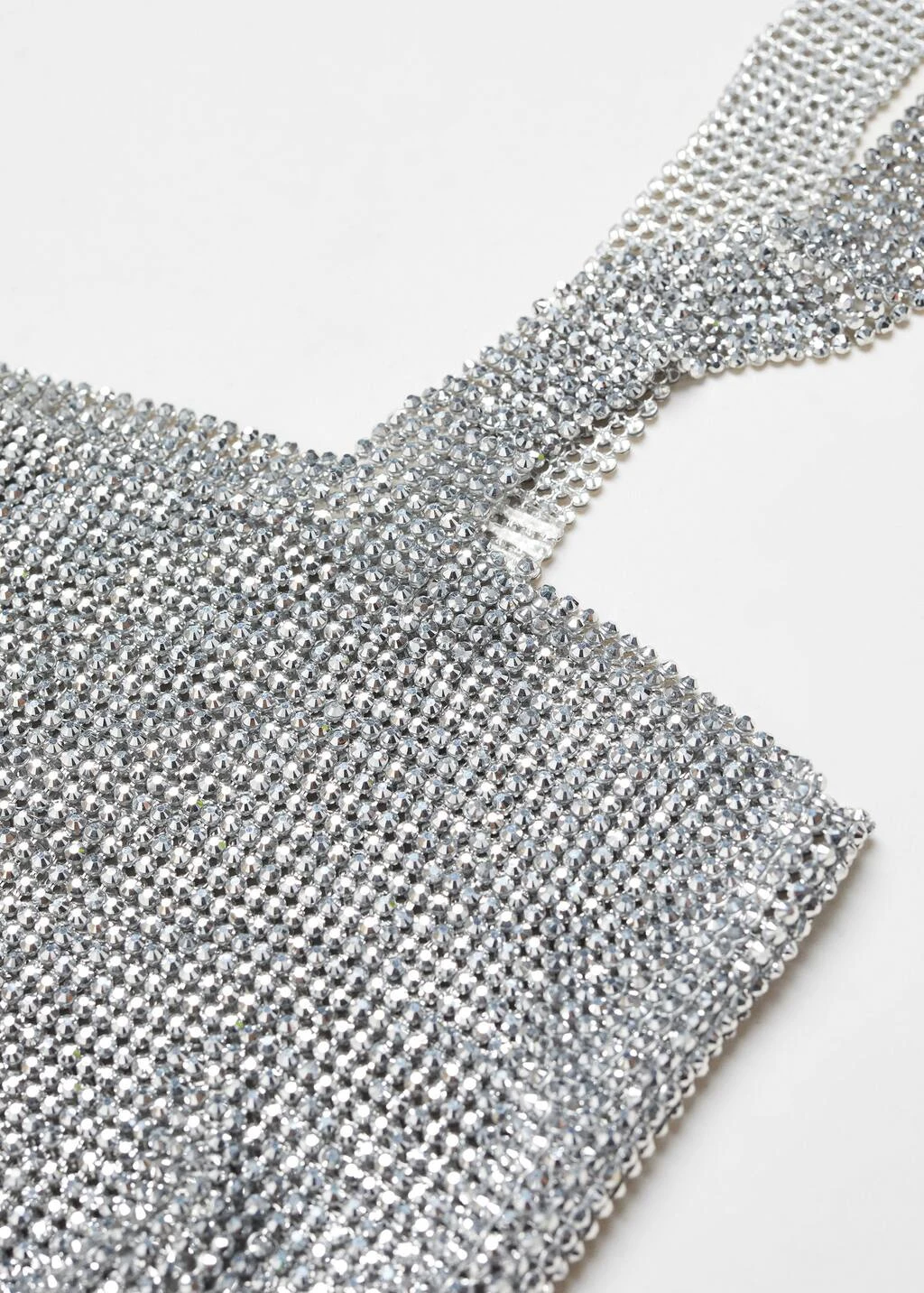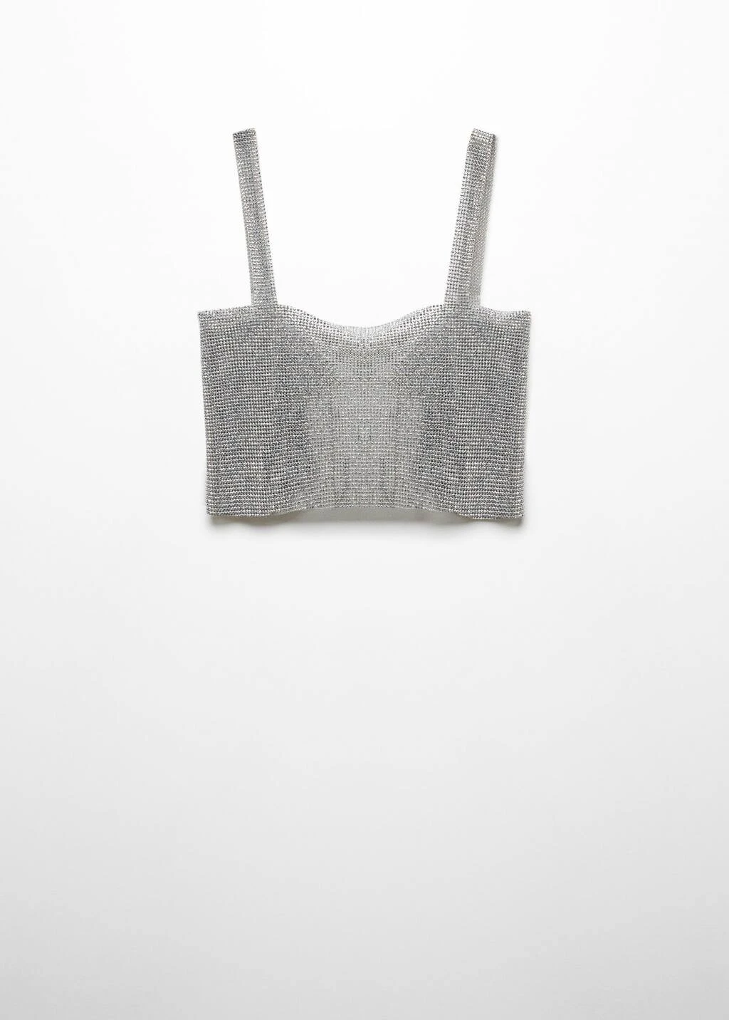 tissu en maille filet, metal, ornement de cristaux, coupe droite, style crop, col droit, bretelles larges, dos nu, fermoir a chainette et mousqueton, saison des festivalsComposition: 100% aluminium. Appliques: 100% verre