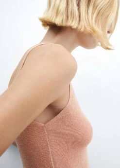 tissu lurex, tissu en maille fine, droit, col en v, bretelles largesComposition: 91% polyester,9% polyester avec revĂȘtement de cuivre