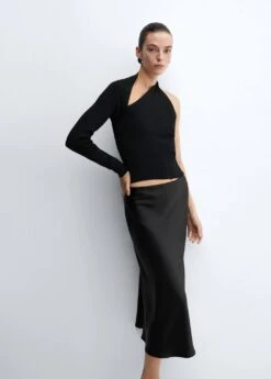tissu en maille fine, tissu elastique, coupe asymetrique, coupe cintree, manches longues, epaules denudees, dos nu, sans fermetureComposition: 99% polyester,1% elasthanne