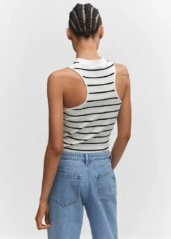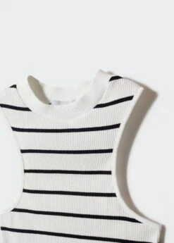 tissu en coton, maille cotelee, ajuste, motif raye, col montant, sans manchesComposition: 93% coton,7% elasthanne