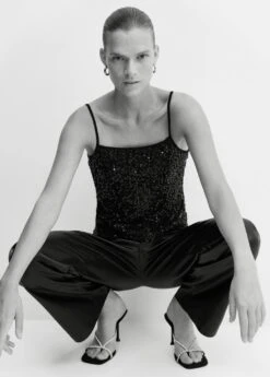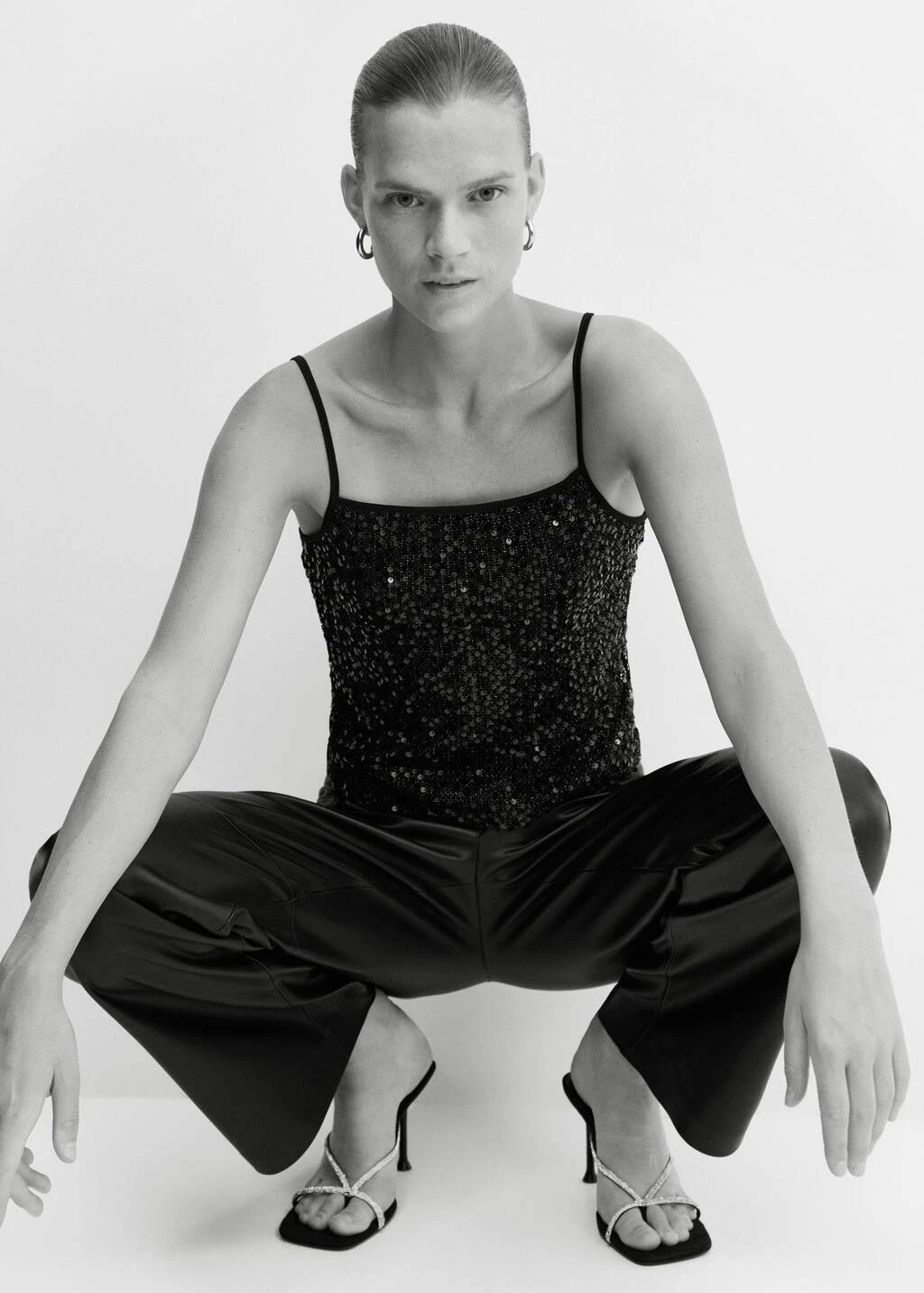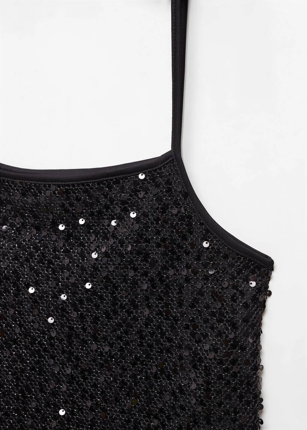 tissu en sequins, coupe courte, droit, sans manches, bretelles fines, doublure, collection fetes et ceremoniesComposition: 96% polyamide,4% polyester. Doublure: 100% polyester. Sequin: 100% poly(tĂ©rĂ©phtalate d’Ă©thylĂšne)