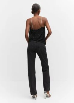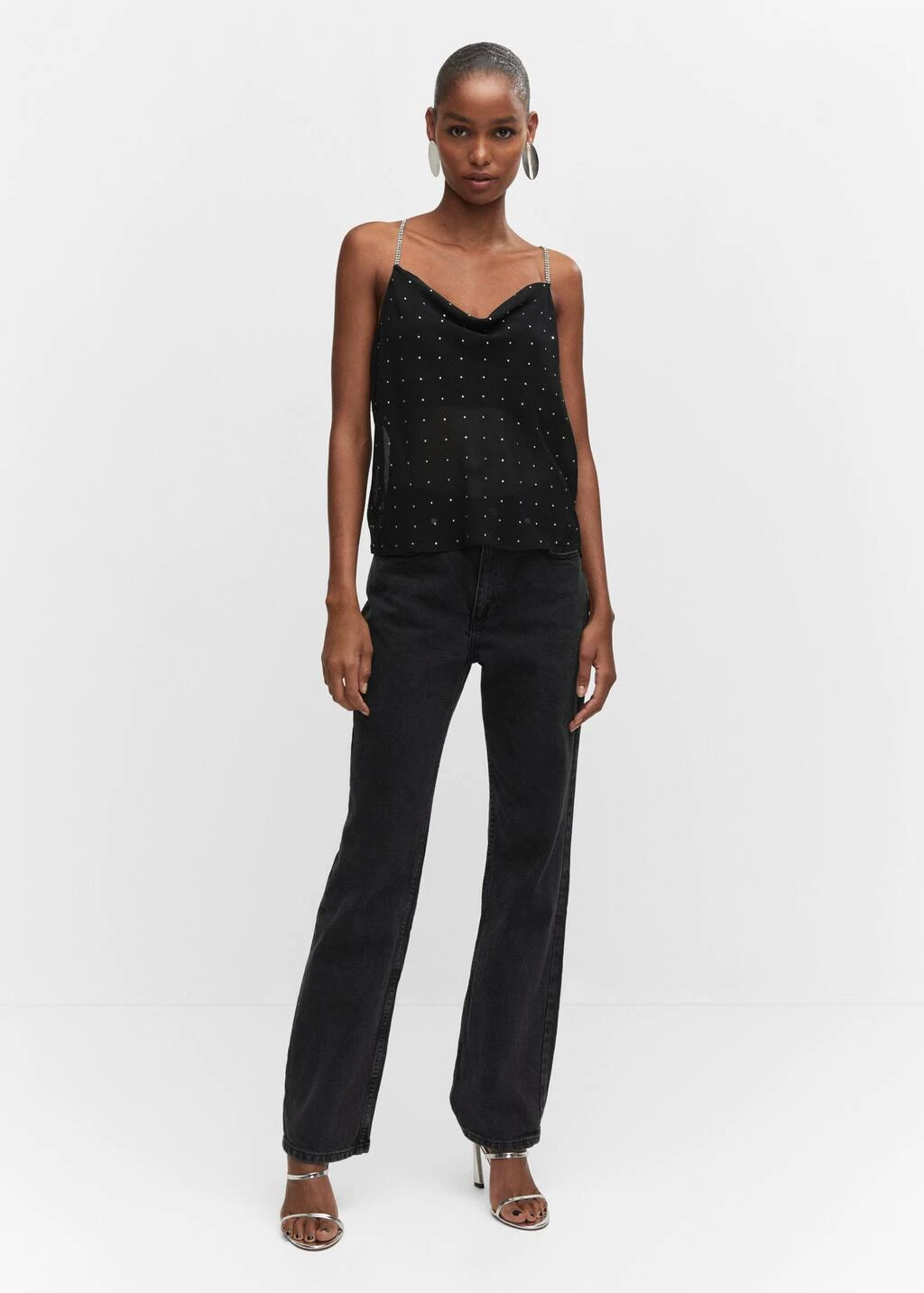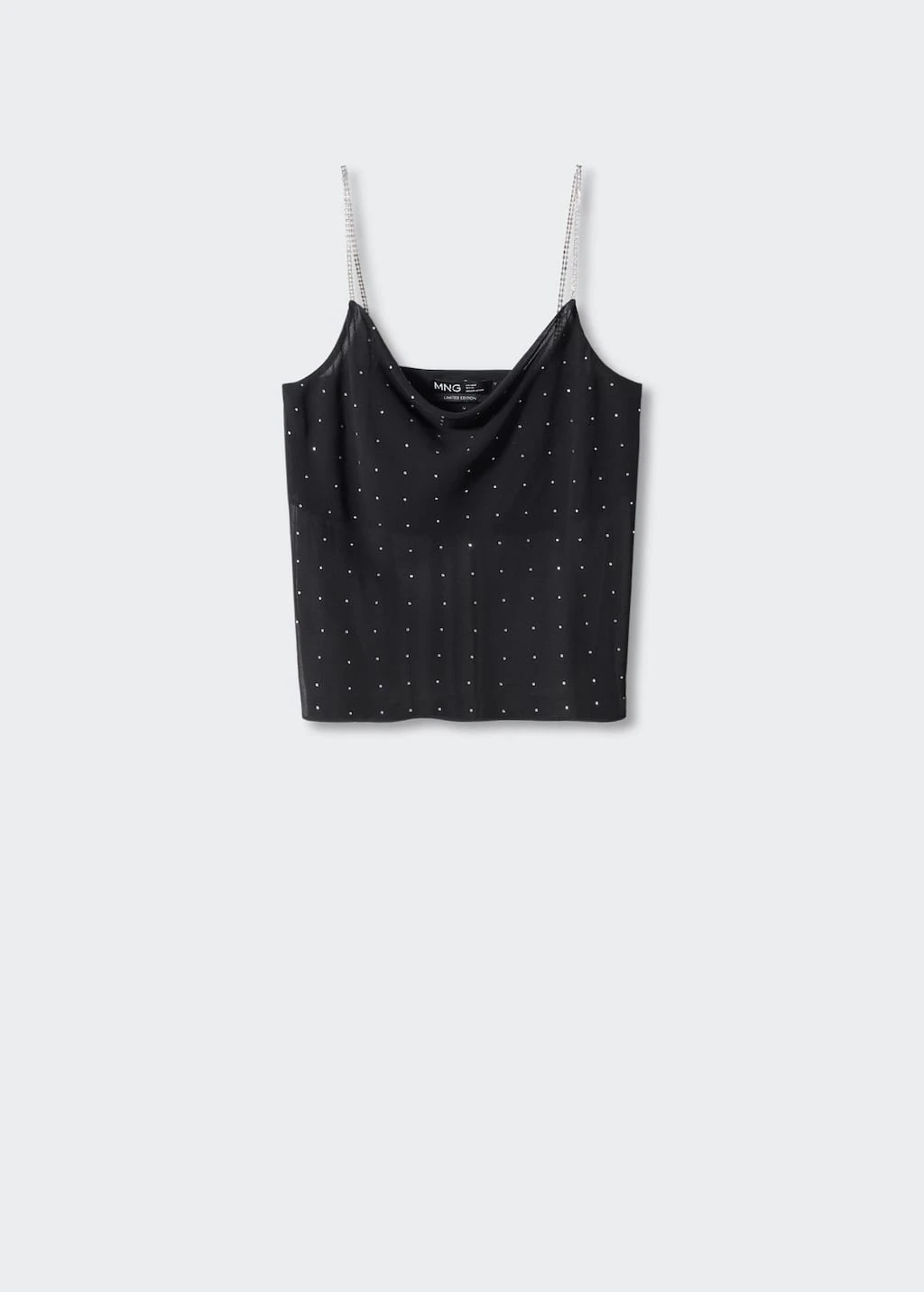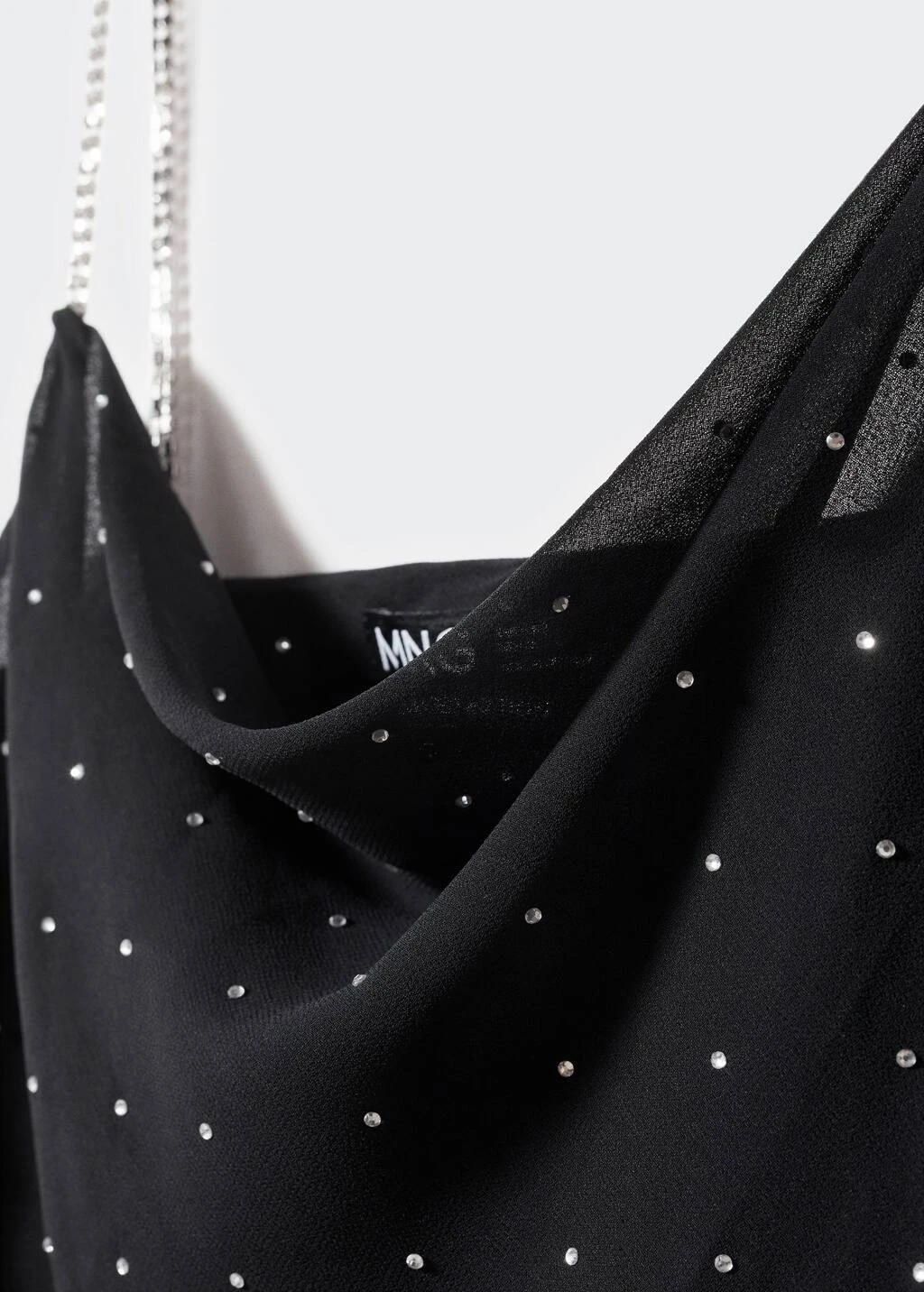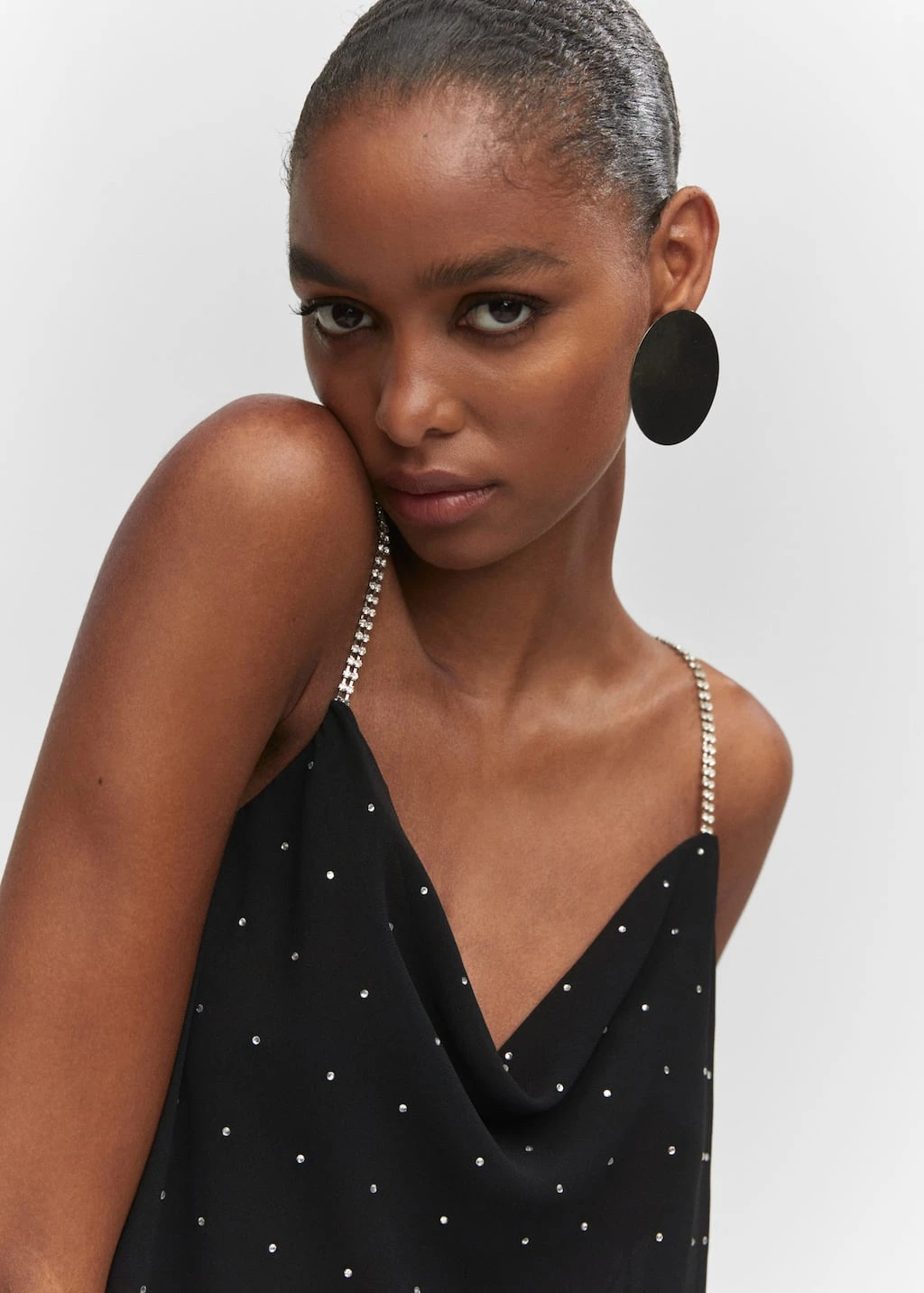 tissu fluide, droit, col drape, bretelles fines, sans manches, detail en strass, sans fermeture, collection fetes et ceremoniesComposition: 100% polyester