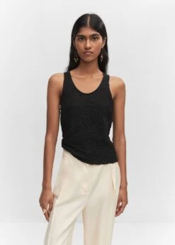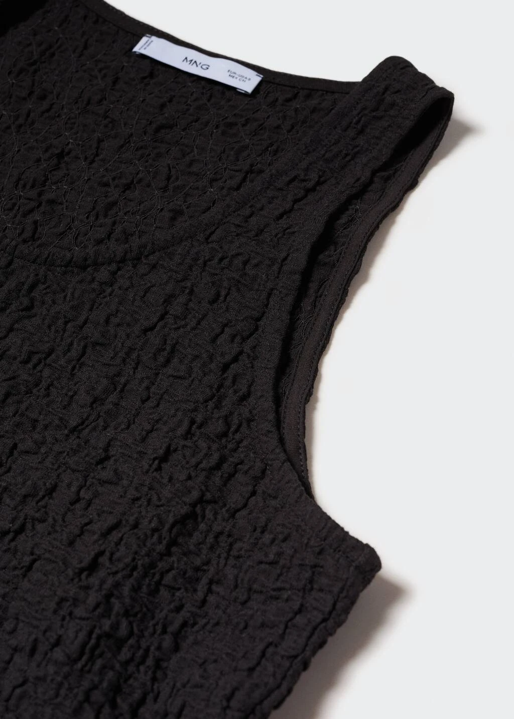 tissu de coton melange, tissu texture, coupe droite, col rond, bretelles fines, sans fermetureComposition: 61% coton,37% polyamide,2% elasthanne