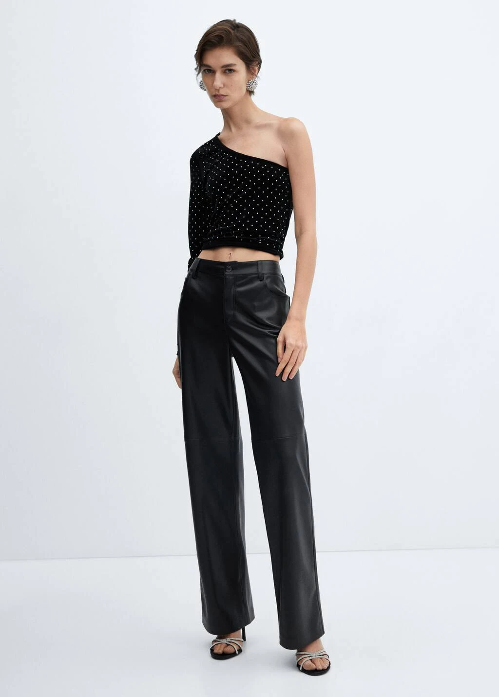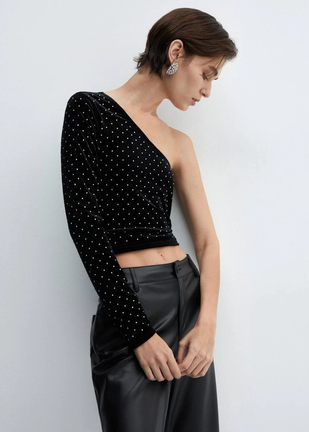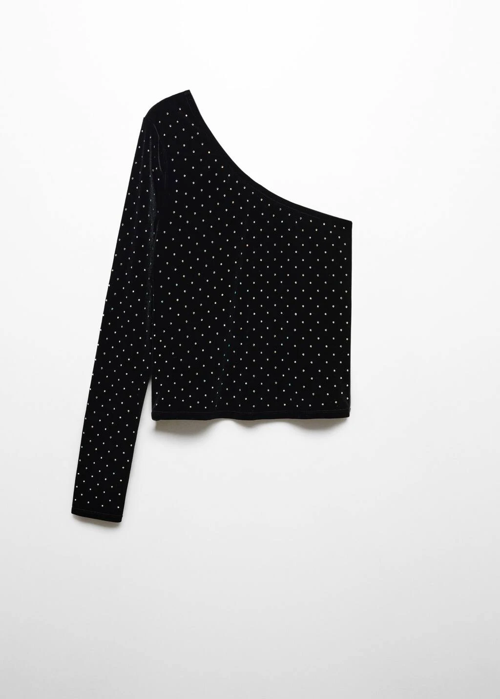 tissu en velours, coupe asymetrique, coupe droite, epaules denudees, manches longues, sans fermeture, detail en strass, collection fetes et ceremonies.Composition: 93% polyester,7% elasthanne. Sequin: 100% dioxyde de silicium